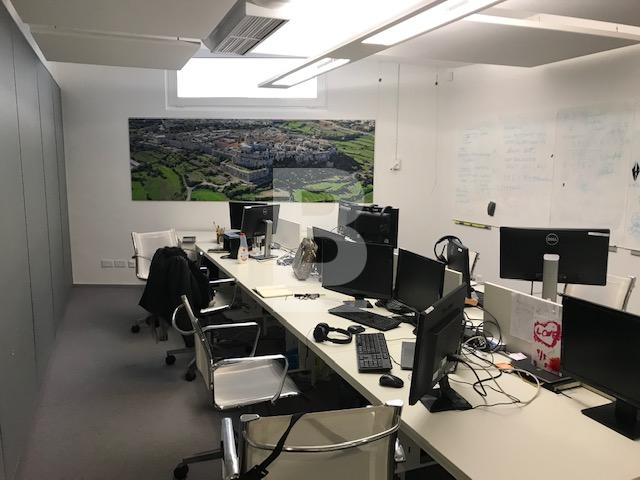 Highly finished and equipped 450 sqm office space in the heart of St. Julian's just off the seafront. The property enjoys its own private entrance that leads directly into the premises. The office enjoys a 20m frontage enjoying plenty of natural sunlight and also comprises of a full kitchen with mess room, bathrooms, server room and store rooms. The main office area is currently split into two which may easily be a full open plan office. A great office in the right location.