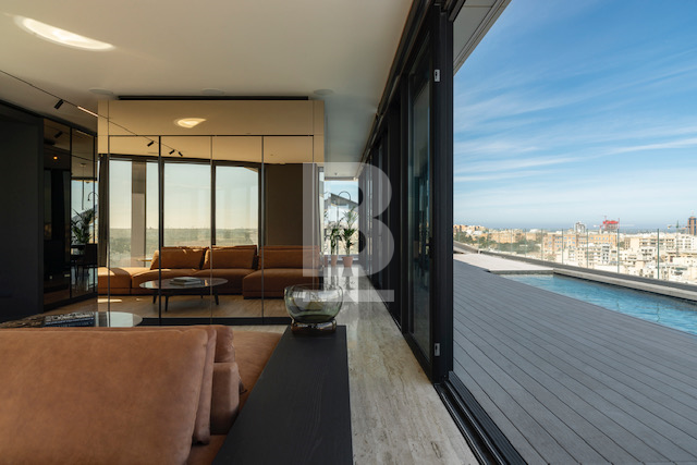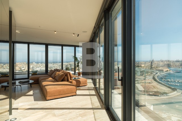 If you're looking for large outside space with fabulous views of Sliema Creek, Manuel Island, Valletta City, Mdina & the Meditteranean sea, then this one is for you. A fully detached unique designer built and furnished DUPLEX PENTHOUSE built on the 20th & 21st levels, enjoying stunning 360 degree views of Malta. Measuring a total of 520 sqm, 260sqm of internal space and 260sqm of external terraces. On the 21st level one finds an entrance hall, large sitting room, kitchen / b'fast room / dining room and guest toilet all overlooking a 150sqm terrace which also includes a 30metre LAP SWIMMING POOL. On the 20th level one finds 3 double bedrooms, all with bathrooms en suite and another 110sqm terrace. Interconnecting 2 car spaces also compliment this super exclusive & private residence. ABSOLUTELY ONE OF A KIND!!