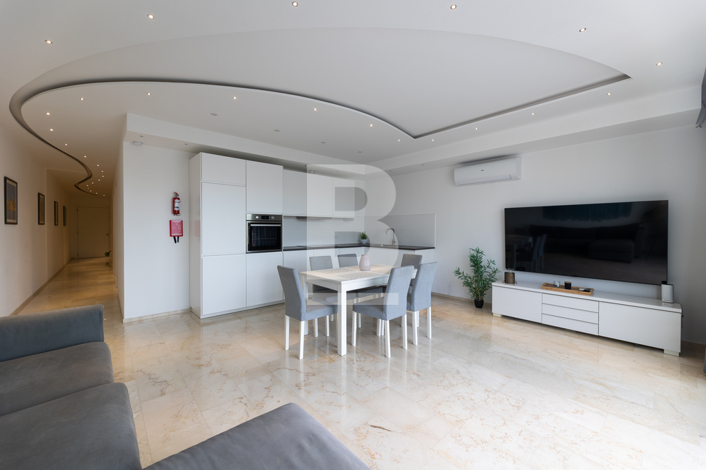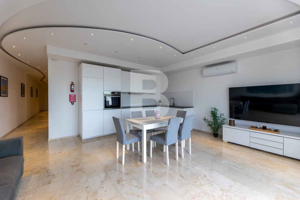 A newly built, highly finished and furnished apartment enjoying spectacular views of Spinola Bay. Featuring marble floors, soundproof ceilings, and premium apertures, this home offers both elegance and comfort.