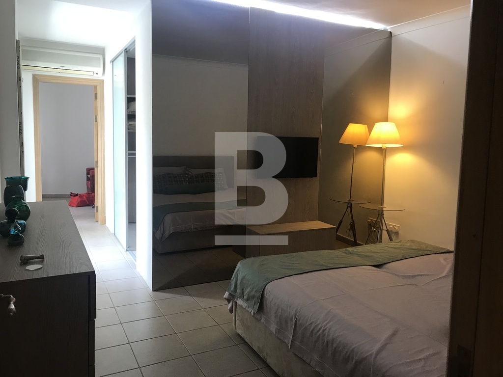 Seafront apartment on the beautiful St. Julians promenade enjoying magnificent open sea views and the idyllic bays of Spinola and Balluta. This 190 sqm apartment is very bright and spacious, accommodation includes: an attractive central entrance hallway separating the living areas from the sleeping quarters; the open plan includes a secluded kitchen with an attractive breakfast bar / dining / living leading out to a decked front dining terrace; three large double bedrooms - the master bedroom with en suite shower, walk-in wardrobe and another adjoining room which can easily be used as a working space or nursery; guest bathroom; utility room and study or another living area. This property is fully air conditioned and furnished.
