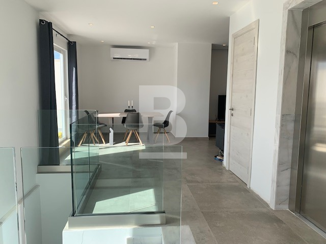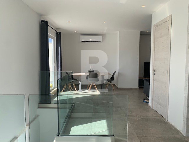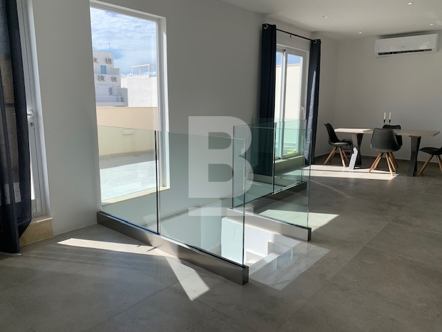 Highly finished and furnished PENTHOUSE, served with lift. Forming part of smart block situated in Sliema just off the seafront and within walking distance to most amenities. Property comprises two bedrooms, master with an en-suite, both leading out onto balconies, main shower room and laundry/ store room on the lower level. The upper level having an open plan fully equipped kitchen/ living/ dining, leading out onto a spacious corner terrace - Perfect for entertaining.