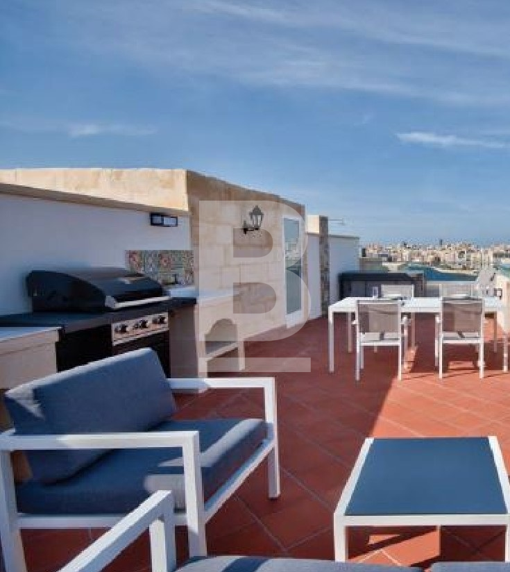 VALLETTA - Luxury 240sqm Duplex Penthouse, located in the heath of Malta’s enchanting Capital City. This property boasts of staggering 360 degree views from it’s own private terrace on the top floor overlooking Marsamxett Harbor, Manuel Island and the surrounding area & Valletta skyline. This property completed with touches of local architectural features all commodities to a highest level of style and comfort. Amenities for this property are two bedrooms with King/ Queen sized beds, a fully equipped kitchen, living area, bathroom (en-suite) & shower room with laundry facilities. All rooms have sea-views. On the top floor, a furnished 100sqm terrace is available with BBQ area and a jacuzzi. Property is located in an fully renovated, award winning block with fully renovated common areas, marble entrance as well as a panoramic lift.