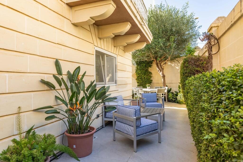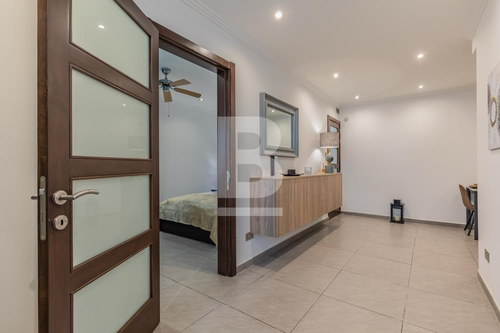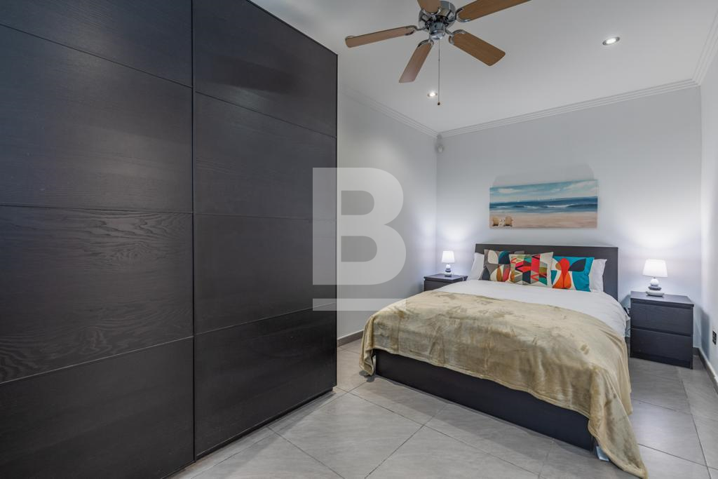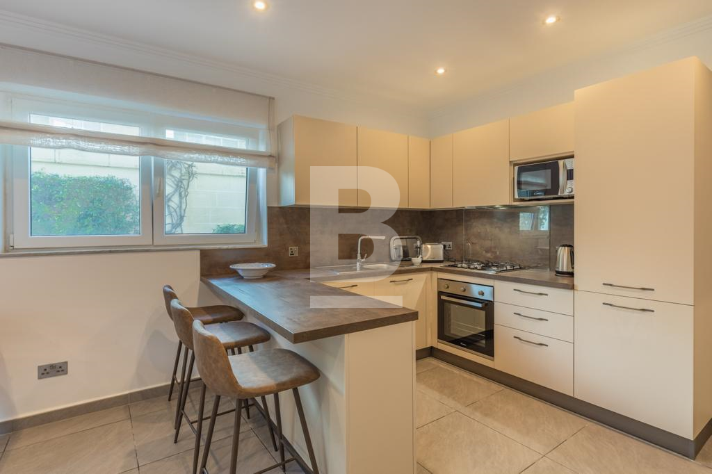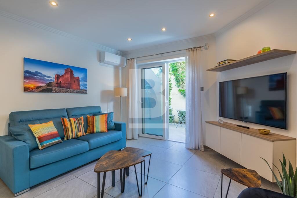Swieqi. Newly refurbished corner two bedroom fully furnished ground floor maisonette located in a residential area with outdoor entertaining area. Open plan kitchen/living, dining area, two bedrooms, two bathrooms. Walking distance to all amenities, entertainment area, beaches and promenade. Ready for immediate occupation. Call your agent for viewings.