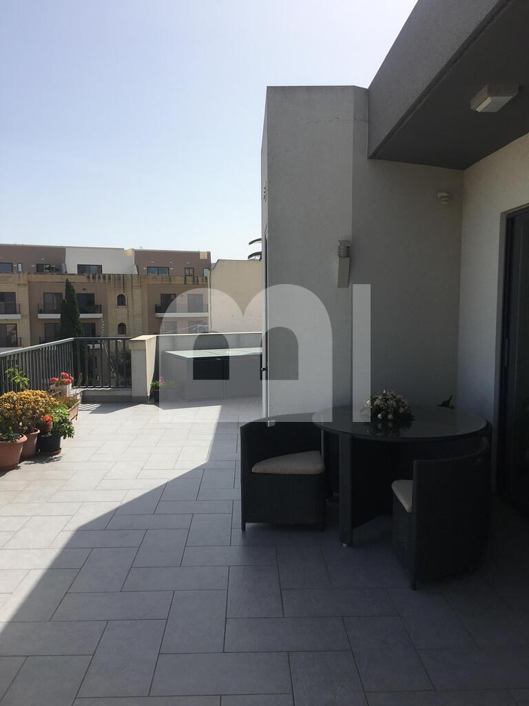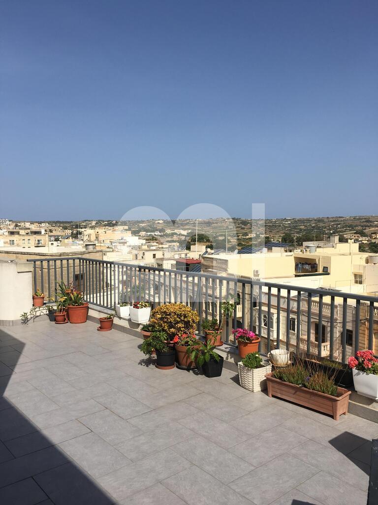 A bright, airy, highly finished and fully furnished 2 Bedroom penthouse in the heart of a quiet and residential area of Rabat. The apartment is accessed by an elevator opening on a large front terrace offering beautiful views of the Maltese countryside. From the terrace, the flat opens on an open plan kitchen / dining / sitting equipped with top of the line appliances. A corridor then leads to the guest bathroom and the 2 double bedrooms. The main bedroom has a back balcony and an en-suite shower room. Every room of the house is air conditioned and benefits from a high level of finishing and furnishing.