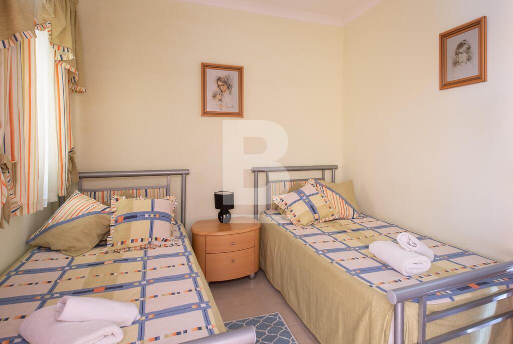 A beautiful and cosy second floor apartment situated in a residential area of Qawra served with a lift. This lovely property comprises of an entrance to a spacious living / dining / kitchen with a large front terrace and lots of natural light, a corridor connecting to a double bedroom and twin bedroom. Main bathroom and an en-suite om the master bedroom. The apartment Is been offered fully air-conditioned and equipped with all necessary appliances and utensils.