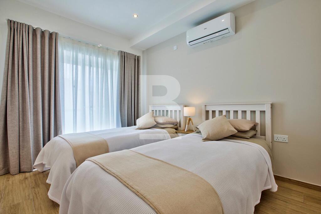 Beautifully finished corner APARTMENT in a block of only three units located just a minute away from Emma's Kitchen and the bus stop. Boasting ample natural light, this property has been tastefully done up and comprises three double bedrooms, all with balcony, main bedroom with en-suite, separate bathroom, wash room with washing machine and tumble dryer. Air-conditioning throughout, kitchen includes Bosh appliances with Microwave, and dishwasher too. A must see property.
