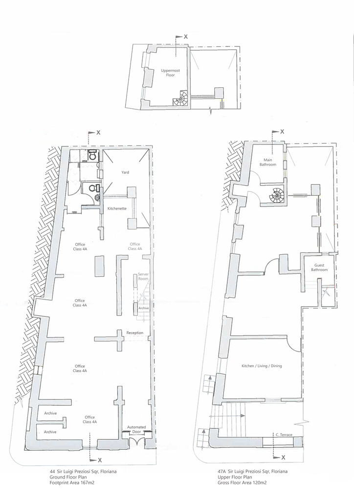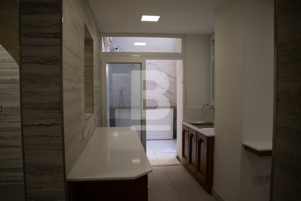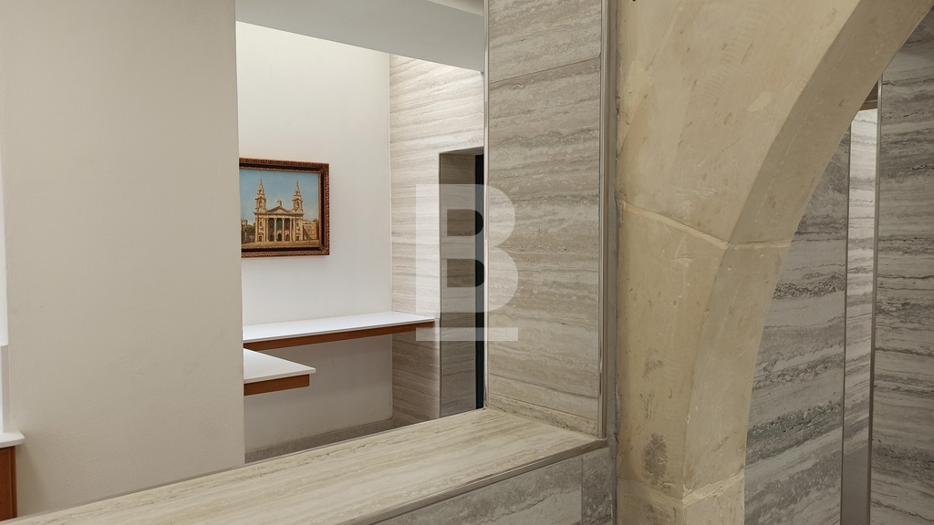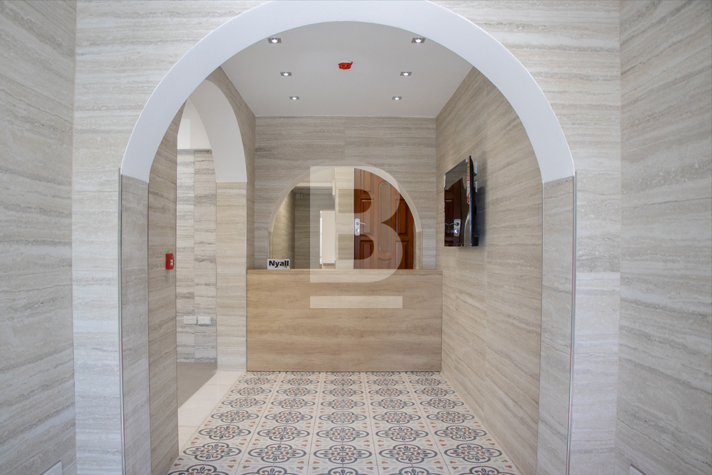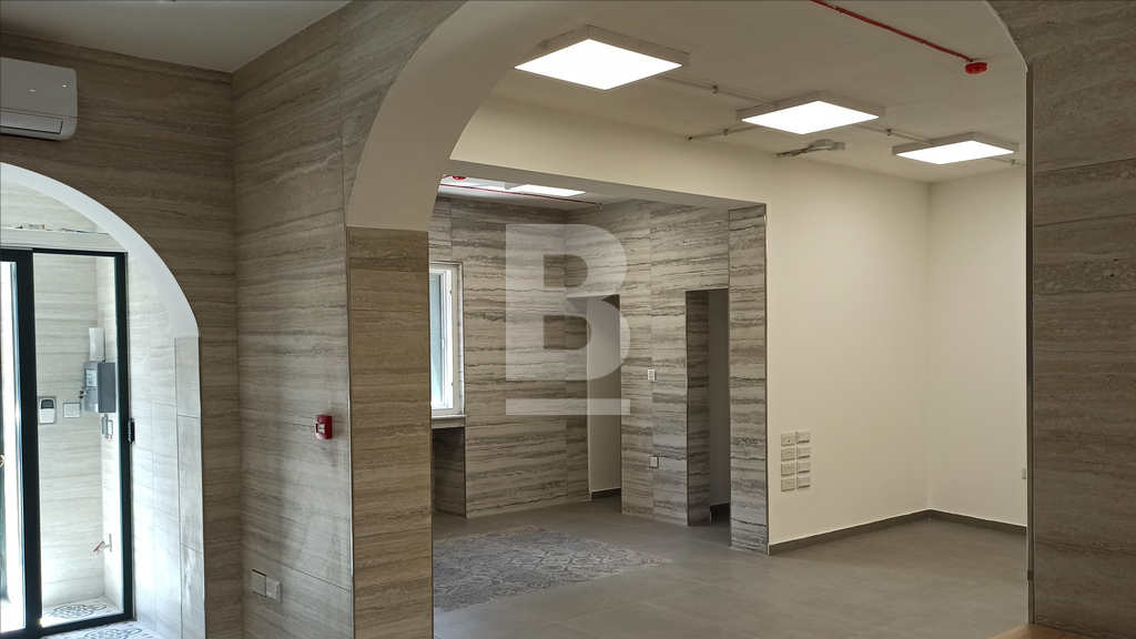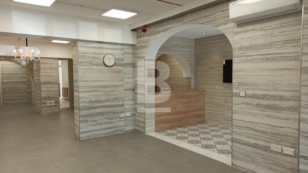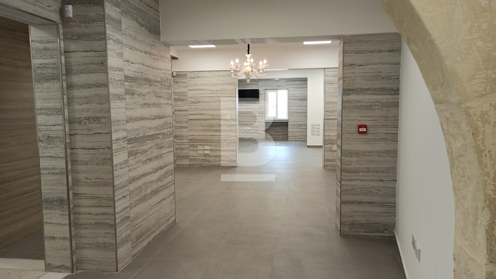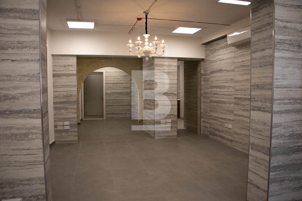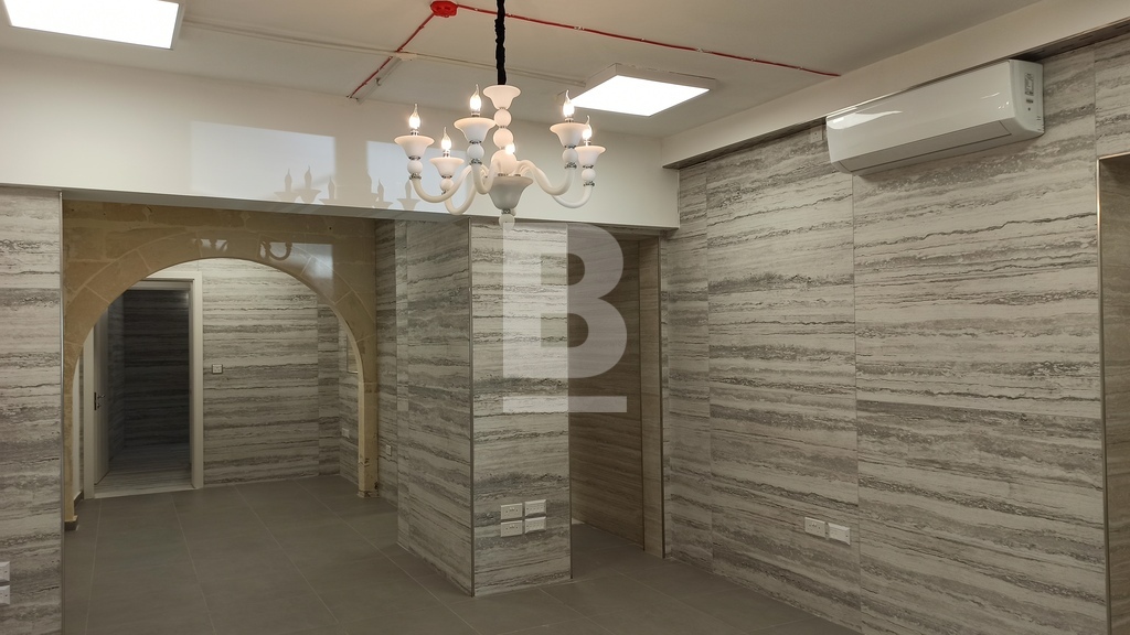 For Sale or To Let. Ready to move into, structurally converted and recently renovated to very high standards is this luxurious and unique property with four independent main doors. Ideal for any reputable kind of business and/or professional. Situated on arguably the best street in Floriana, close to all amenities and within walking distance from Malta’s Capital City, Valletta. Having magnificent Grand Harbour views and the three cities from Sir Luigi Preziosi Gardens and the surroundings. The ground level Class 4A Office has a footprint area of 167sqm and the upper level offer a generous gross floor area of 120sqm. Both levels used to be interconnected through an internal stairs which still exists. The Property benefits from an internal yard. The Property enjoys natural light throughout, due to a number of large double glazed apertures. It also has high ceilings, keeping a cosy ambiance throughout all seasons of the year. Yet, it is fully air-conditioned with seven units. Newly equipped with all necessities and it is mostly furnished. A reception desk, networks, internal/external surveillance cameras, fire safety devices, intruder alarm, digital & key-less access control automated sliding door and a high quality intercom system are already installed for the Office. The external façade is well looked after with polished travertine stone. Both the ground level and the upper level are fitted with a beautiful oak kitchen, white quartz top and brand new appliances. The Property has four bathrooms, two of which include large walk-in showers and one of which is equipped for special needs persons. Further complimenting the Property are three 500ltr each water tanks including pumps, a reverse osmosis system, five TV’s, internal doors, curtains, several ceiling/wall light panels, four large chandeliers and a comfortable sofa bed. The water and electricity meters are also installed. Property accommodates a good number of employees, an executive office, a boardroom, a server room and archiving/store area. A 63sqm garage situated few minutes away is also made available by same owner.