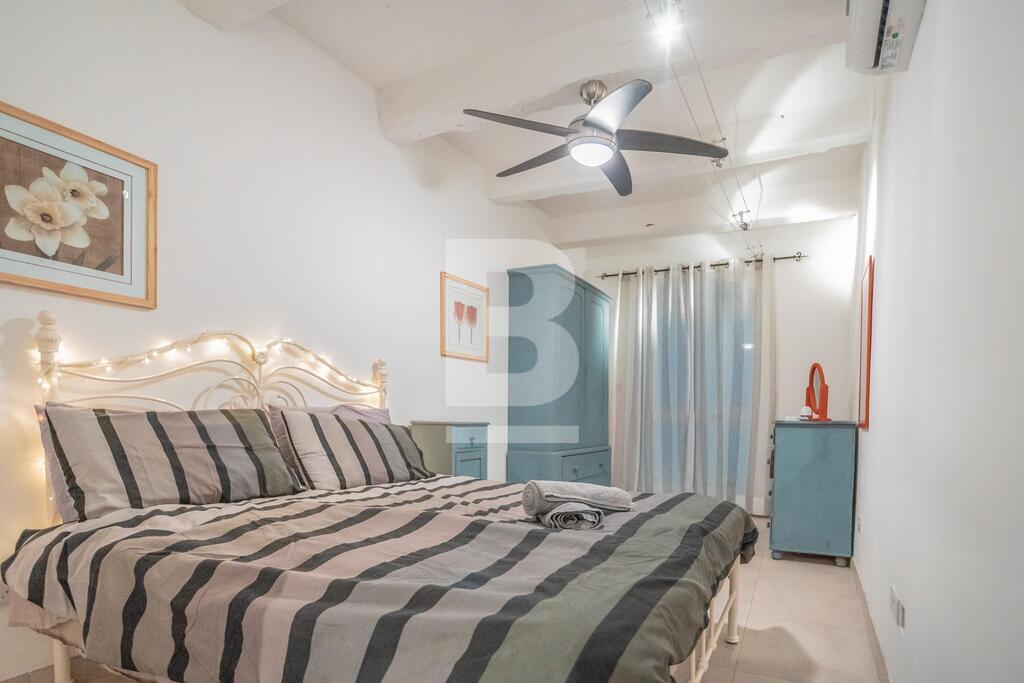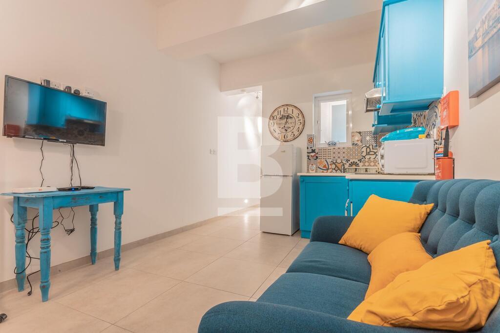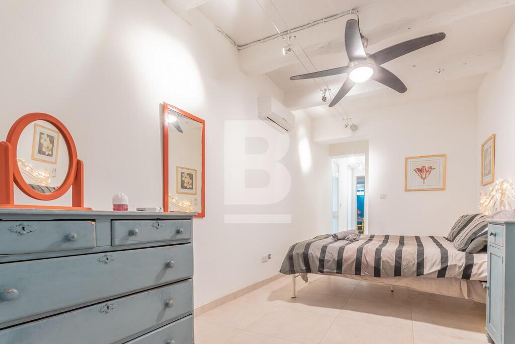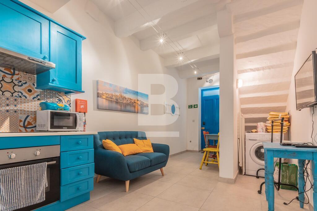 GROUND FLOOR MAISONETTE in Valletta, located within just 7 minutes walk to St. George's Square. The property enjoys traditional features including wooden beams and 'xorok'. Upon entering the property, one finds a kitchen / dining / living room (including a 3-seater sofa), a spacious shower room, small internal yard, and a large bedroom with a small external space. The property is newly-converted, fully furnished and equipped with complete kitchen appliances, utensils and A/C unit in the bedroom.