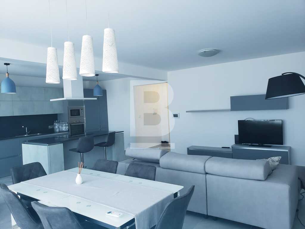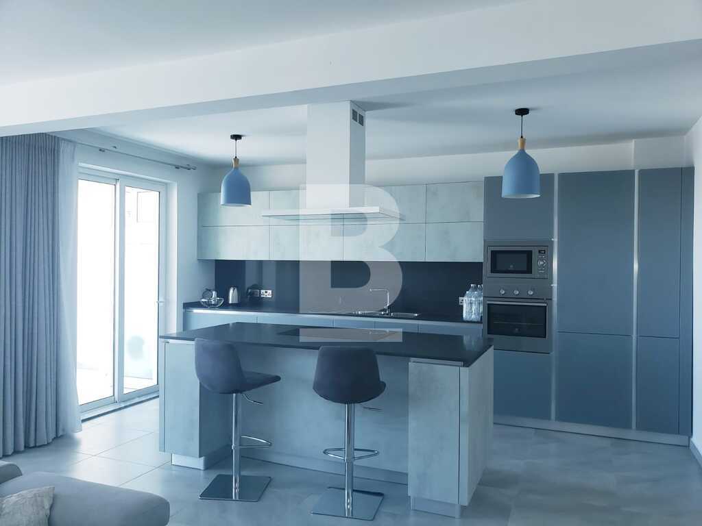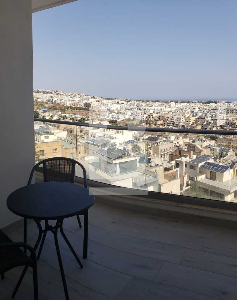 Lush and ultra modern two bedroom apartment situated in a quiet residential area and enjoying an abundance of natural light. Property comprises of two double bedrooms, both having front balconies (one of which en-suite with shower) main bathroom (also with shower) and a lovely kitchen/living/dining area with two large glass sliding doors leading on to a good sized back terrace which overlooks the valley and the eastern coastline enjoying unobstructed, distant sea views and spectacular sunsets. Property comes fully equipped with washing machine, tumble dryer, dishwasher, comes air-conditioned throughout and would make a lovely and comfortable family home.