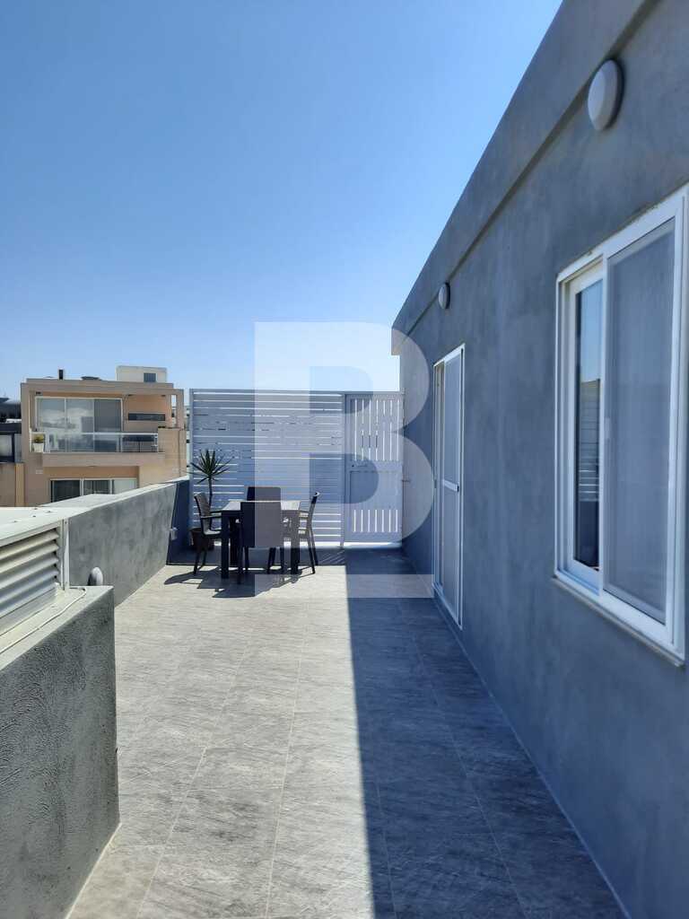 Modern penthouse located just a minute away from Deguara confectionary consisting of one double bedroom (main with shower en suite,single spare bedroom, open plan kitchen/sitting/dining area leading onto a large terrace with distand sea views. The property is equipped with washing machine/dishwasher/fly screens and air-conditioning. The block is served with a lift.