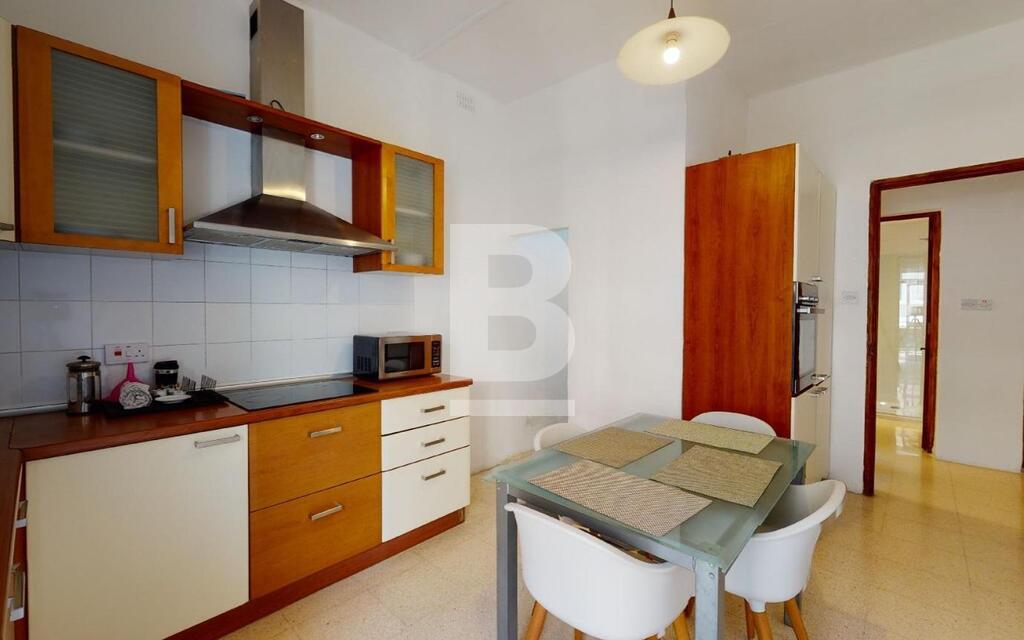 Scandinavian styled 3-bedroom apartment. measuring circa 150m2 and rents fully furnished and equipped making it an ideal rental home for a family. The apartment forms part of residential complex and is situated on the 2nd floor. From the apartment entrance you enter a hallway leading to a living/dining area, 3 bedrooms, a spare toilet, a kitchen, a bathroom and a box room. The living area, kitchen and the 2 bedrooms with queen beds have street views where the bedroom with 2 single beds, bathroom and spare toilet are facing the internal shaft. The kitchen has a separate laundry space at the back with a washing machine and a small balcony on the front with street views. The apartment is located on the second floor and can only be reached via a stairway. Since the apartment is built in-between other apartments with very thick walls and the apertures are double-glazed, the insulation is rather good and the necessity of AC’s has not been requested by tenants before. Installation of AC’s can be discussed if required.