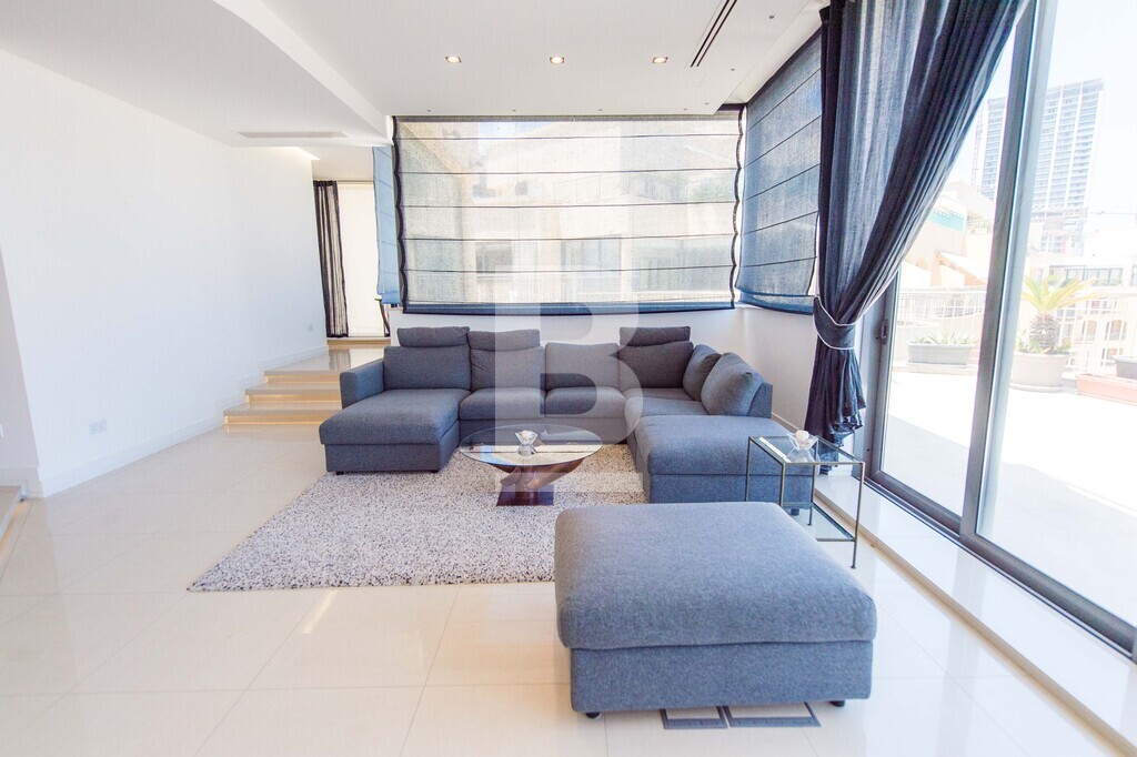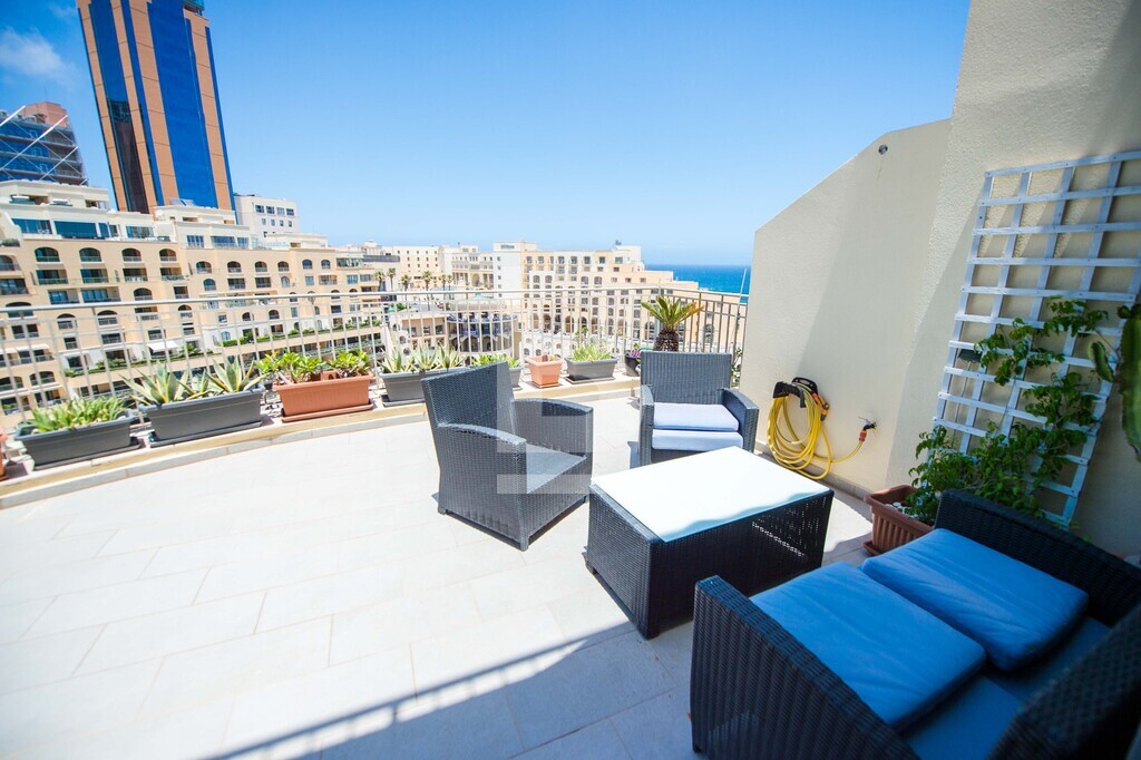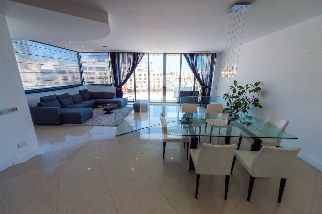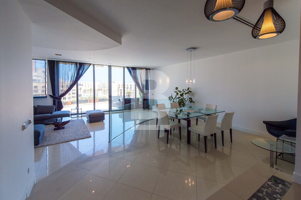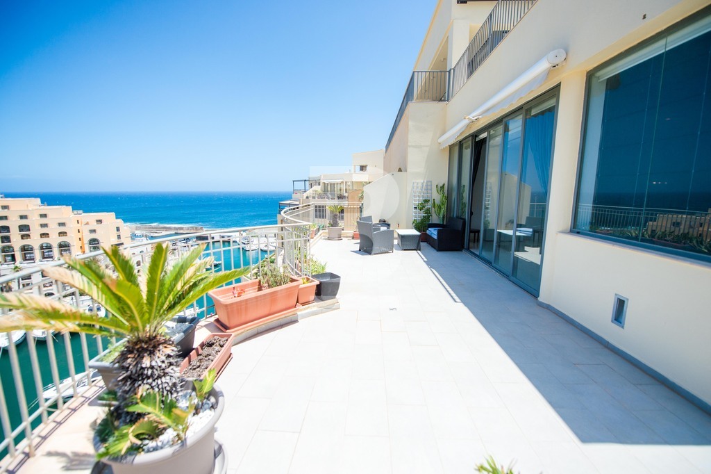 Perched on the highest point of Malta's most exclusive marina Development is a rare opportunity to purchase a one of a kind Penthouse in Portomaso having an internal area of circa 240sqm with two entrances . No expense has been spared to finish the luxurious interior comprising an entrance hall, leading on to a kitchen living and dining area that leads onto a vast terrace with stunning marina views . A study area . 3 double bedrooms all leading onto a back terrace with spectacular views ,Main bedroom with a good sized walk-in wardrobe and extra storage. A main bathroom with bath and shower , A Second bedroom with ensuite . Guest toilet . A large 200sqm terrace complements this property highly suited to entertain. This property is also fully air-conditioned and includes an underlying car space . This penthouse has an abundance of light and entertainment space where sophistication and luxury become a lifestyle.