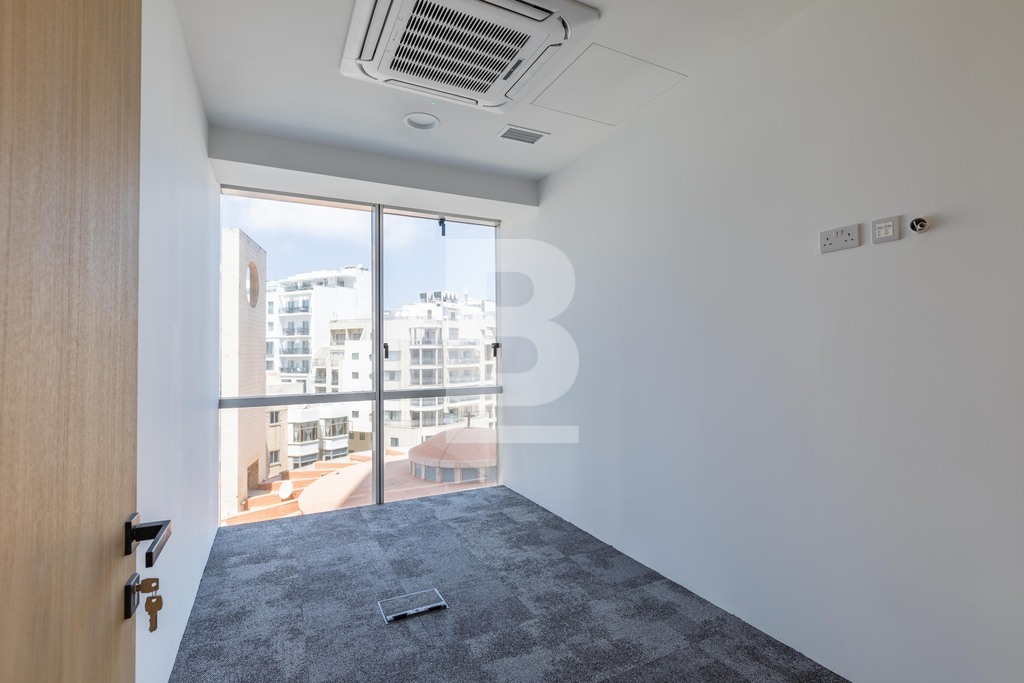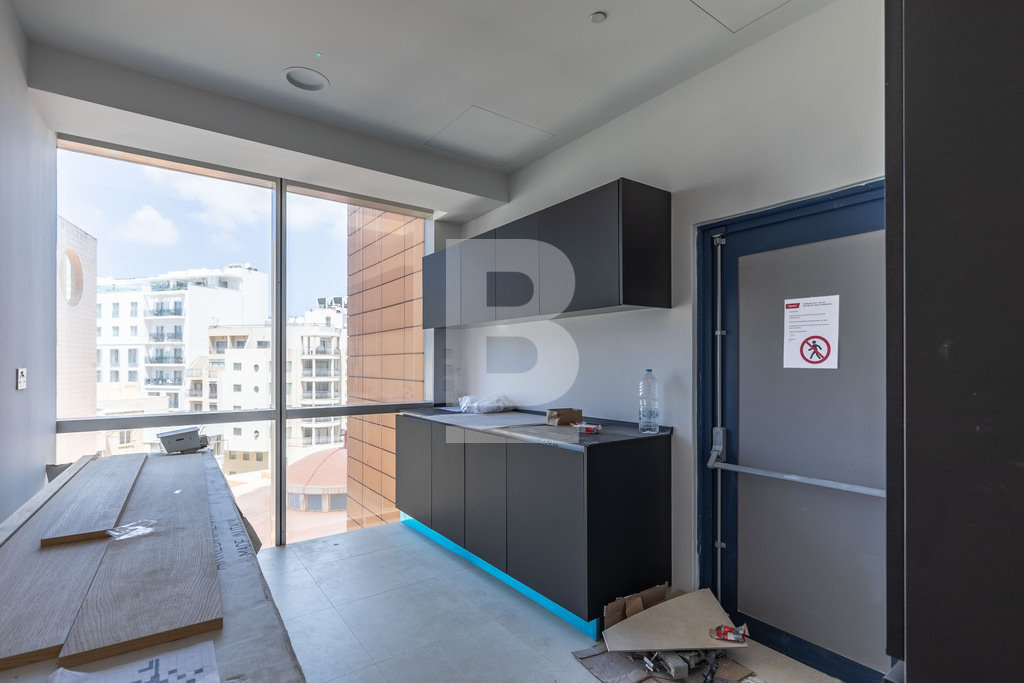 A stunning and beautifully designed 2nd floor office in a high end business tower in St Julians. Comprising 162 sqm of open plan office space with an abundance of natural light and floor to ceiling windows. A closed directors office. A board room, a kitchenette, male and female toilets. AC throughout.