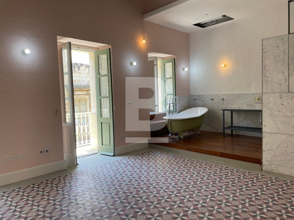 A beautifully and meticulously renovated 18th Century Palazzo on a prominent street in Valletta set on 5 floors. 3 x 1 bed apartments of 70 sqm each. 1 x studio of 40m2. And a stunning triplex of 180m2. Roof terrace with kitchenette, large BBQ and a splash pool. Must be seen to be truly appreciated. Freehold.