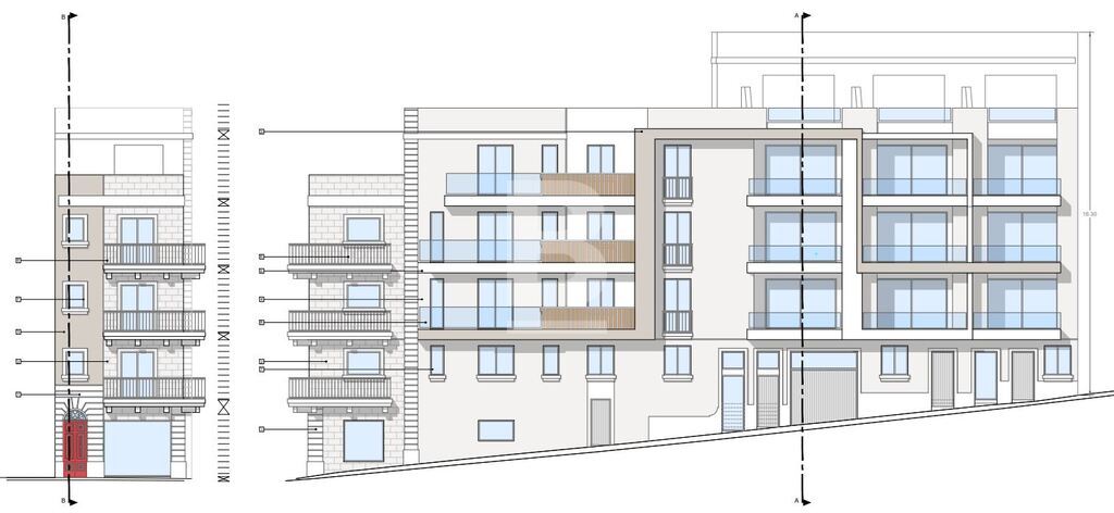 A 2nd floor apartment measuring in total 148 sqm, One finds an open plan living kitchen dining area leading to a front terrace measuring 11 sqm. The internal living space measures 131 sqm and one enjoys 3 bedrooms (master with en-suite and walk-in wardrobe leading to a back terrace measuring circa 7 sqm), 2 double bedrooms, laundry room and a main bathroom Part of a new development being completed in shell form by December 2023, and the entire project will be finished by end of August 2024. Freehold.