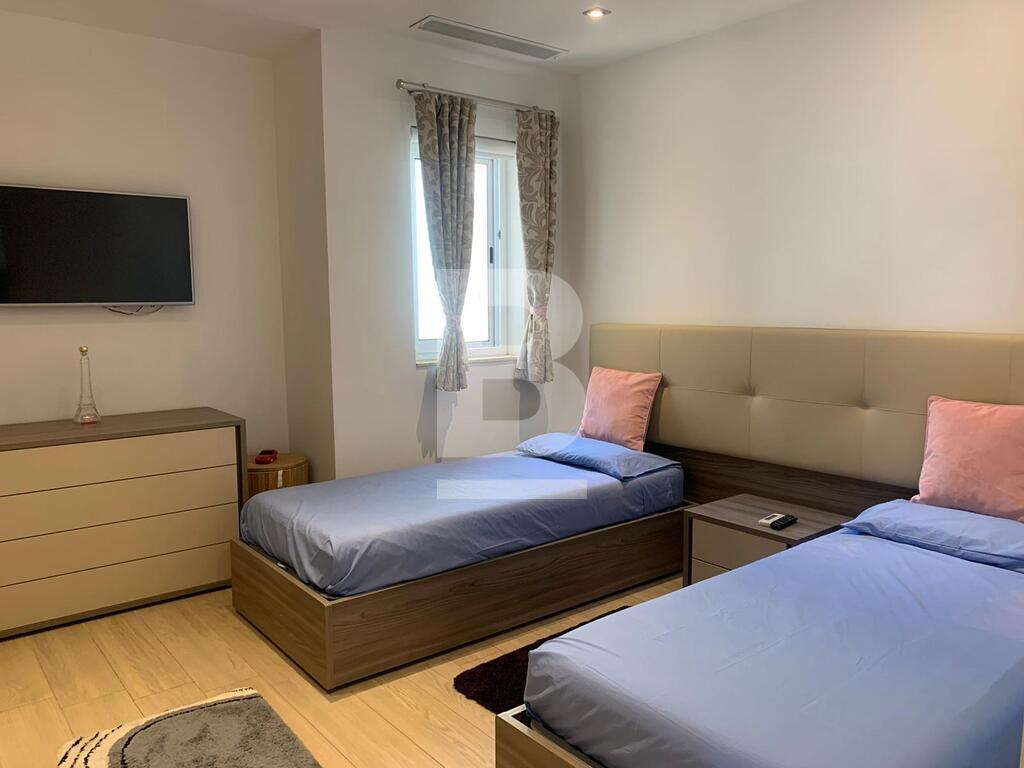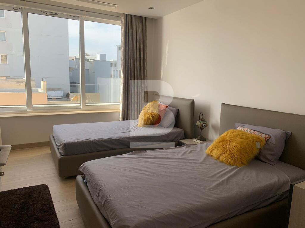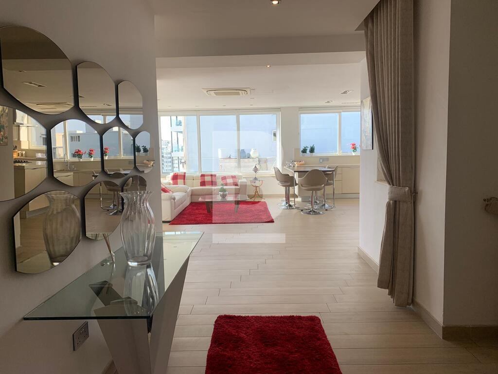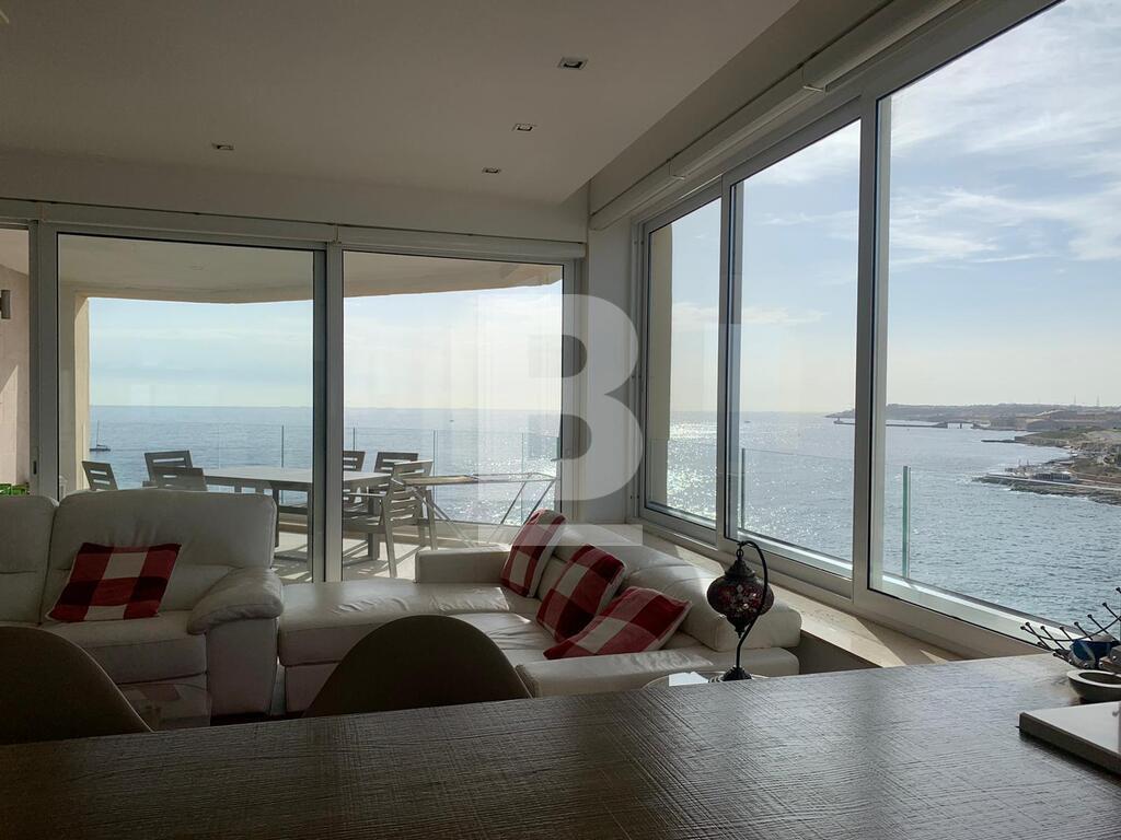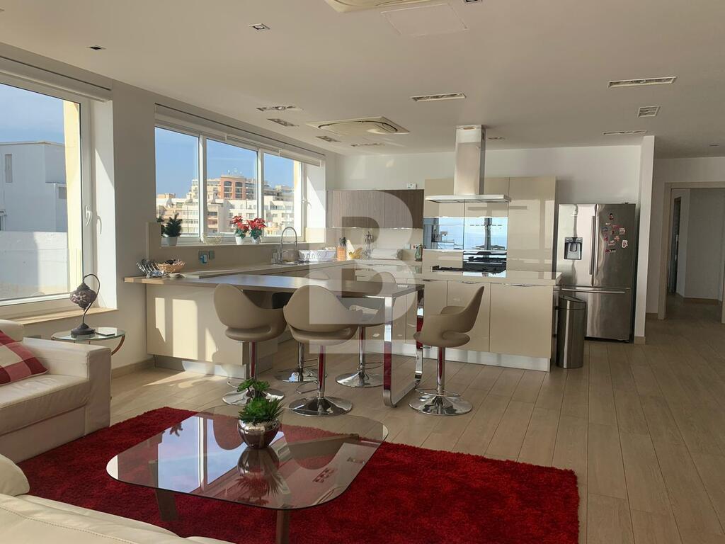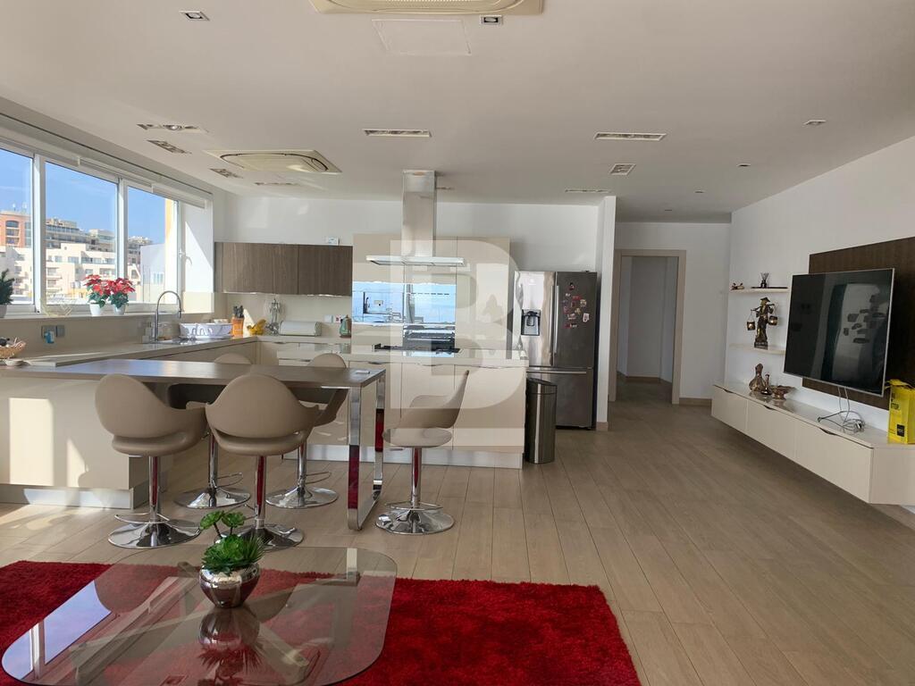 A superb corner PENTHOUSE having fantastic unobstructed sea views, located in the heart of Sliema a stone throw away from the promenade, shops, restaurants and beaches. Accommodation comprises of an entrance hall, four bedrooms, master and double bedrooms are with en suite bathroom and walk in wardrobe, a spacious kitchen/living and dining area which leads onto a 20sqm terrace, guest bathroom and utility room. Property is being sold fully furnished with air conditioning throughout. FREEHOLD.