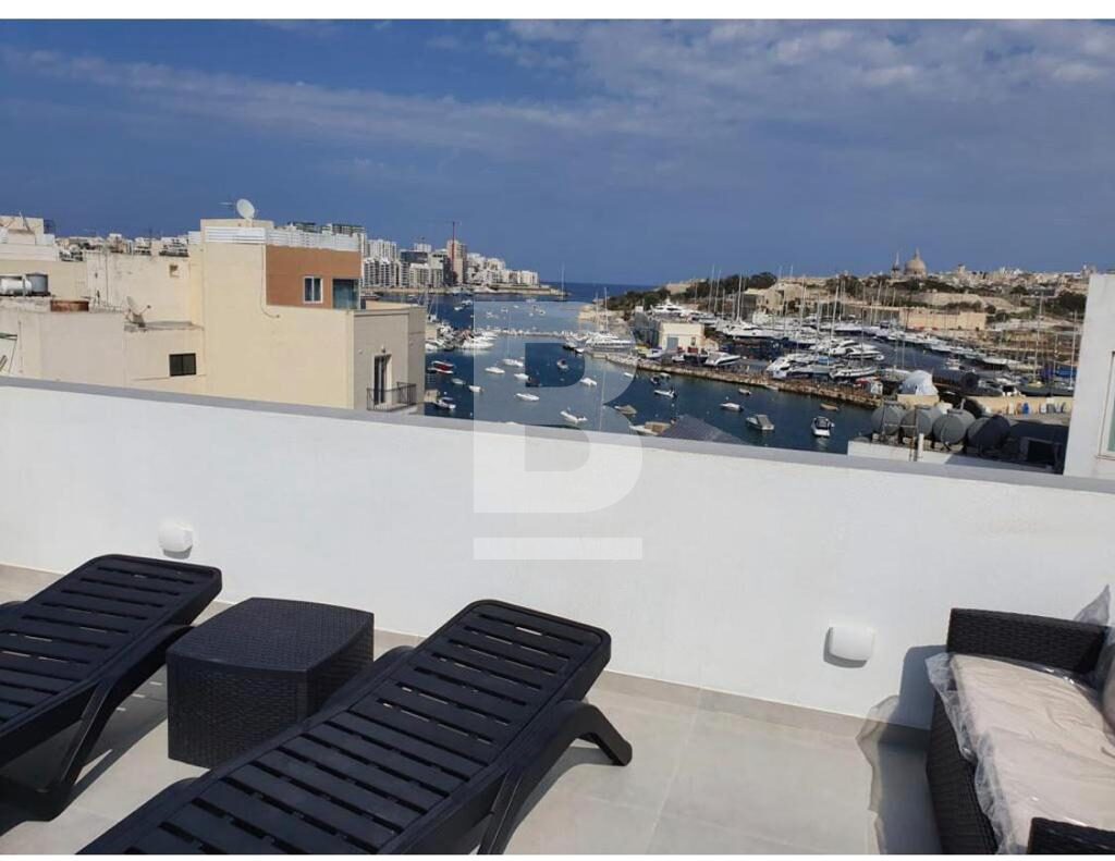 Modern PENTHOUSE located in the heart of Gzira just off the sea front and Manoel Island. The property consists of one double bedroom, shower en suite, guest toilet, open plan kitchen/sitting/dining room leading onto a good sized front terrace with SIDE seaviews, equipped with washing machine and air-conditioning.