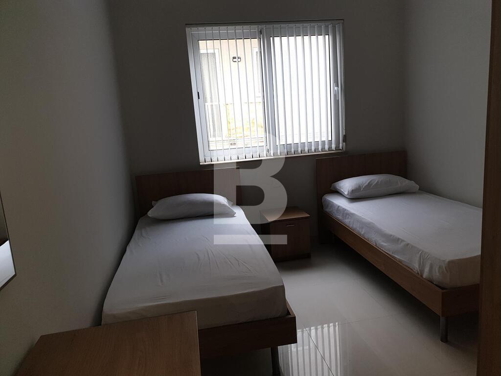 A second floor corner APARTMENT in a highly sought after central area of Mellieha, boasting high standards of finishing and furnishing, in a small block of only 3 dwellings. Measuring approx. 75sqm, property consists of a combined kitchen having fully integrated A+ rated appliances, and a combined spacious living and dining area. Furthermore property has bathroom, double master bedroom with en-suite shower, a twin-bed guest room. Situated on a corner plot one can benefit from an abundance of natural light. A terrace area can be found at the side of the property which is enclosed and exclusive to the property and boasts a distant sea view, as well as two front balconies. This energy efficient property is complimented by a modern air-conditioning system. Ideal for couples or families and viewing is highly recommended to appreciate this fantastic property.