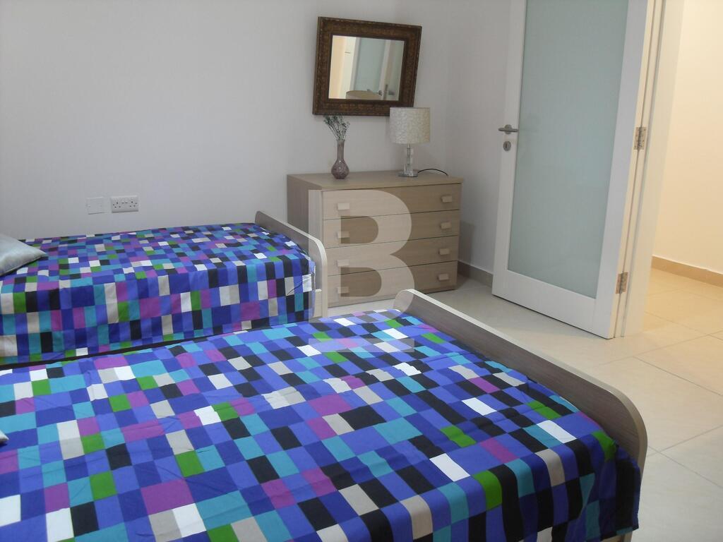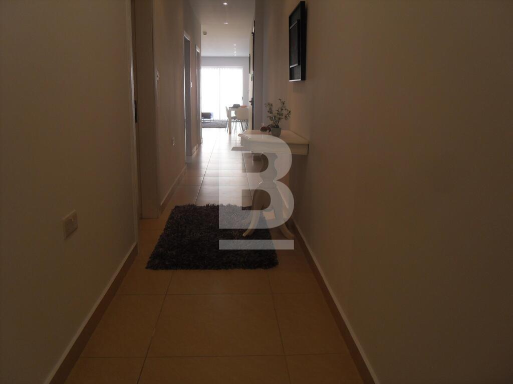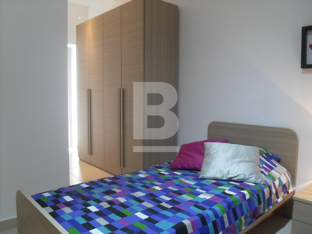 A fully furnished, 3 bedroom apartment situated in one of Sliema's most central areas and within walking distance to the seafront and shopping streets. This property is situated on the 5th floor and offers a fully equipped kitchen attached to a living/dining area that leads on to a front balcony, 3 double bedrooms and main having en-suite facilities, back balconies, a guest bathroom and laundry/utilities room with washing machine and dryer. Property is fully air-conditioned and also includes a dishwasher and lift. A good sized property ideal for a family or friends sharing. Optional garage available.