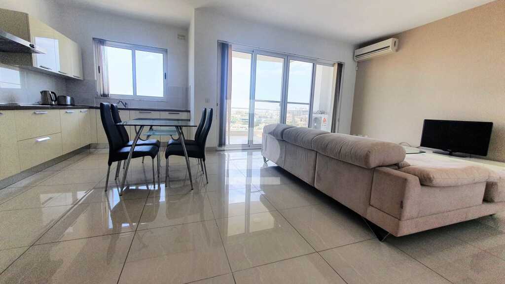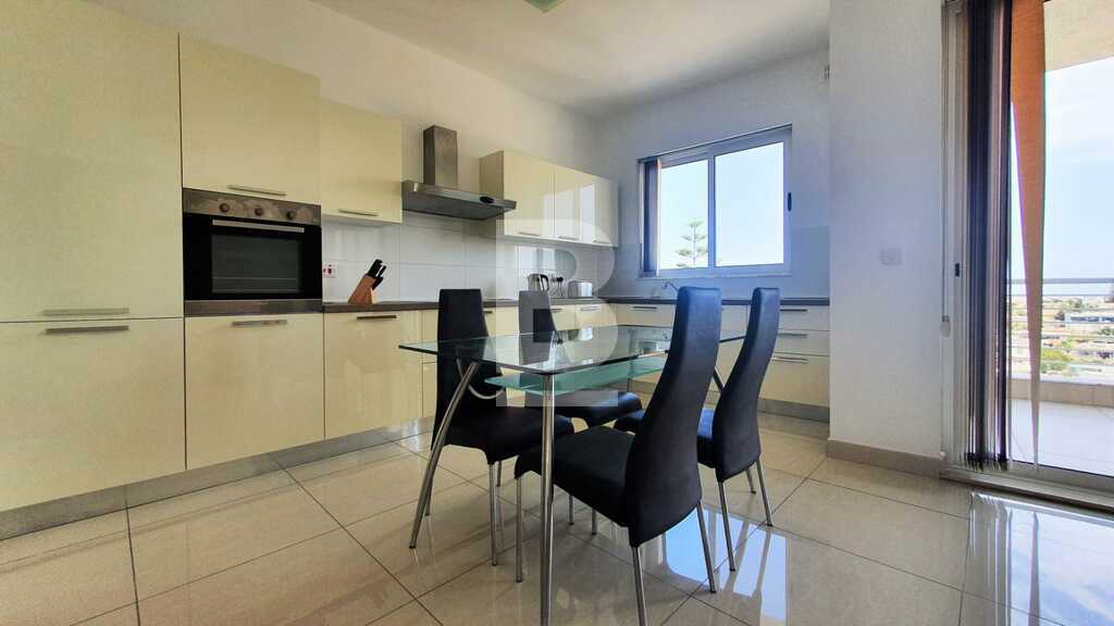 A modern second floor 3 bedroom apartment situated in a nice open part of Mellieha heights offering stunning views over Santa Maria and Mellieha bay. Comprising of an open plan kitchen/living/dining with a large front terrace, one double and one single bedroom, main bathroom with a bath an en-suite bathroom on the master bedroom. The property is being offered fully air-conditioned and equipped with modern branded appliances , it has a burglar alarm system