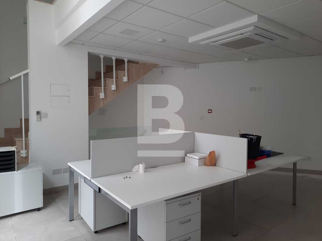 Commercial duplex premises licensed as an independent office in the heart of Sliema's Business and shopping district. The office measures circa 126sqm in total and it is split into two floors. On the first floor one may find two separate but interconnected open plan rooms, each one with its own toilet and also a kitchenette. On the second floor, one finds two separate rooms, which at the moment are the boardroom and the management office, and two shower rooms. The office space is of a very high standard and includes VRV air-conditioning system, alarm system and fire detectors. Worth viewing!