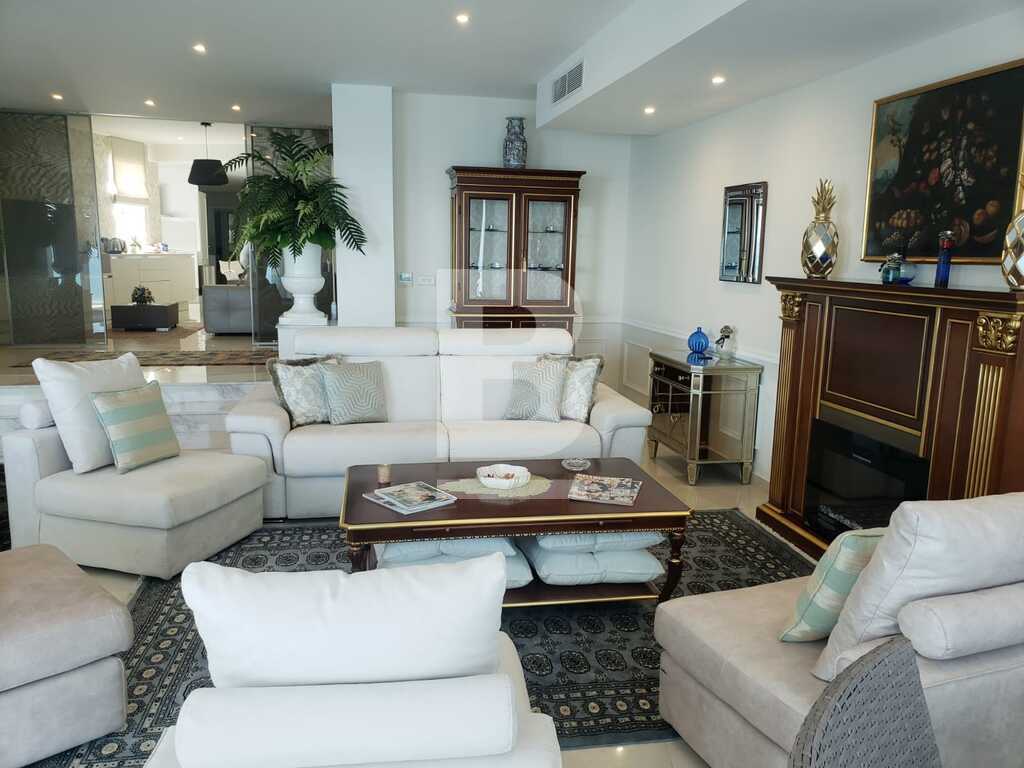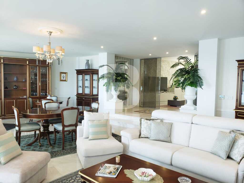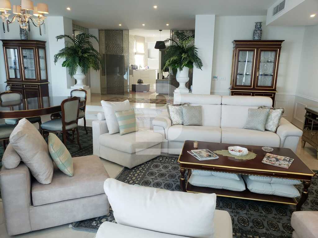 A stunning, highly finished and fully furnished eighth floor apartment situated in a prime location and next to all amenities. Property comprises a welcoming entry hall, spacious open plan breakfast kitchen / dining / living area leading to a front terrace with outdoor furniture and enjoying breath taking sea views, three double bedrooms, all equipped with their own television set, en-suite facilities and underfloor heating. A Guest bathroom, box room , laundry room with both washing machine, dryer and outside drying area on adjacent back balcony. This property is fully equipped with concealed air-conditioning with VRV system and includes TV in living area and each bedroom, dishwasher, inbuilt coffee machine, underfloor heating in bedrooms and en-suite bathrooms, lift and intercom. One car space included in the price. Viewing is highly recommended!