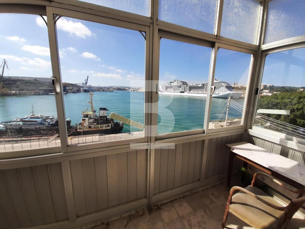 A large seafront apartment in the Urban Conservation Area of Sengela enjoying a unique position overlooking Valletta. The wide-fronted apartment enjoys excellent direct views from several rooms. The property is being sold furnished and in excellent condition but requires modernization. An award-winning architecture firm has worked extensively on conversion plans to convert the property into a large 3 double bedroom apartment with 3 bathrooms, a box room as well as a large kitchen, living and dining room all enjoying excellent sea views. The living quarters lead to a wide terrace overlooking Valletta. The property is spread over 150 sqm, all rooms enjoy high ceilings and it is a corner detached property on the 2nd floor (1 apartment per floor only.) Full development PA permit for conversion in hand. The property enjoys part ownership of roof (the roof can be developed).