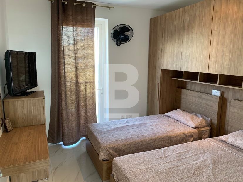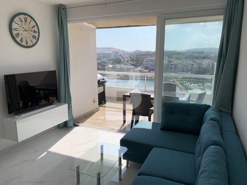 A spectacular seafront penthouse situated on the 7th level of this seafront block. This nicely finished penthouse is comprised of a fully equipped kitchen with dishwasher, living and dining area which leads on to a lovely terrace where one can enjoy BBQs with views of Qawra Bay and also Mdina. This property has 2 double bedrooms with main having en-suite facilities, a main bathroom and also enjoys a back terrace as well as use of the roof. Air conditioned all throughout and car spaces opposite the block available at a daily cost. An ideal space for those wanting to enjoy sun and sea all day while also having that extra outdoor space to entertain or unwind.
