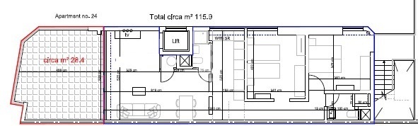 Apt. 24, On the 4th floor, Fantastic Sea View, Minutes away from Ghadira bay. It’s a block of only 4 apartments, two lifts. 2 bedrooms (main with en-suite) 1 main bathroom, kitchen/living/dining. It’s a block of only 4 apartments with two lifts. large terrace. Freehold