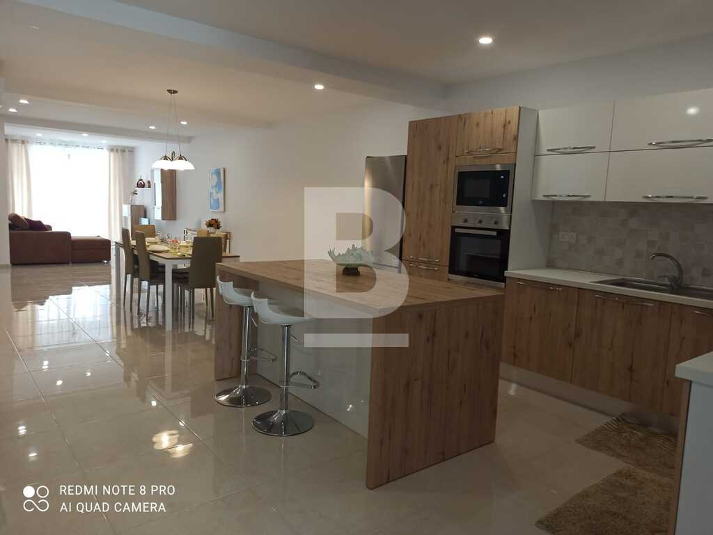 A Brand new apartment in a Brand new block in a quiet residential area in Marsascala. This property is finished to high standards and it is highly recommendable. Upon entering the apartment one can find a large and spacious kitchen/living/dining area, 2 double bedrooms, main bedroom with a walk-in wardrobe and en-suite bathroom, wash room, 1 main bathroom and another room which can be used as a study or bedroom (sofa-bed installed already). Also complimenting this apartment are 2 large balconies, 1 in front and 1 at the back with distant sea views. Also a 2 car interconnected garage is available in the same block.