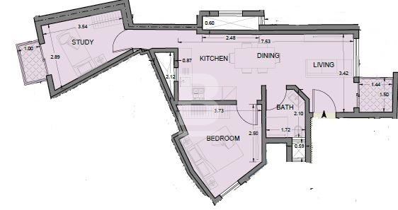 A beautiful fifth floor 1 bedroom plus Study apartment in a block of 13 is situated in a residential area in Msida and consists of approximately 51sqm. This property consists of a spacious open plan kitchen / living / dining area leading to a front balcony, double bedroom, a study, which can also be used as a second bedroom with a side balcony, and a separate bathroom. The apartment will be sold in shell and should be ready by August 2023.