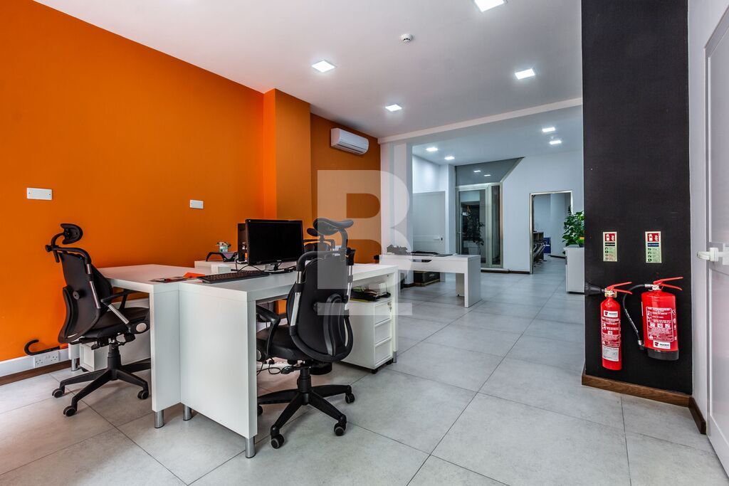 A seafront ground floor commercial premises situated in a prime location having an open area of around 380 sqm of office space internally and 100 sqm external, a reception area, a number of closed offices and board rooms, bathrooms, a kitchenette and a spacious back yard. This office is being offered fully furnished to high specifications. This premises may be ideal as a bank or any type of prestigious office space. AC throughout. Alarm system. Included in the price is Another seafront office parallel to this one comprising 90 sqm opposite the Sliema promenade comprising a reception area, a number of closed offices, an open plan desked area , kitchenette, bathroom and boardroom. Ac throughout. Property is being offered fully furnished great as a rental investment . Offices are being sold fully furnished and ready to operate .