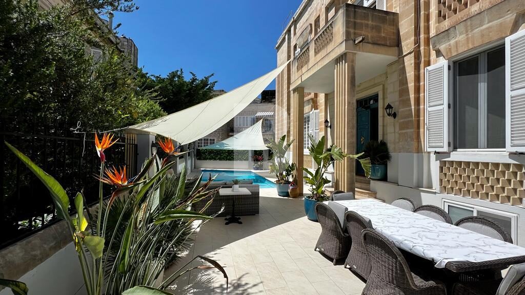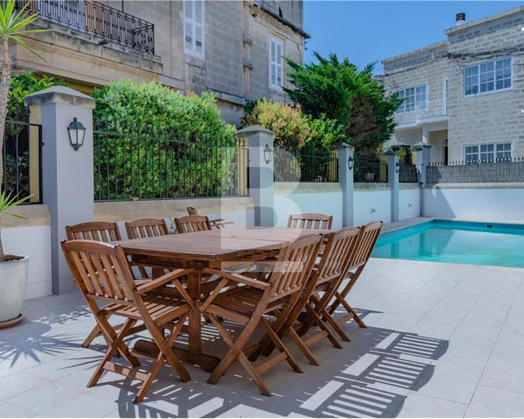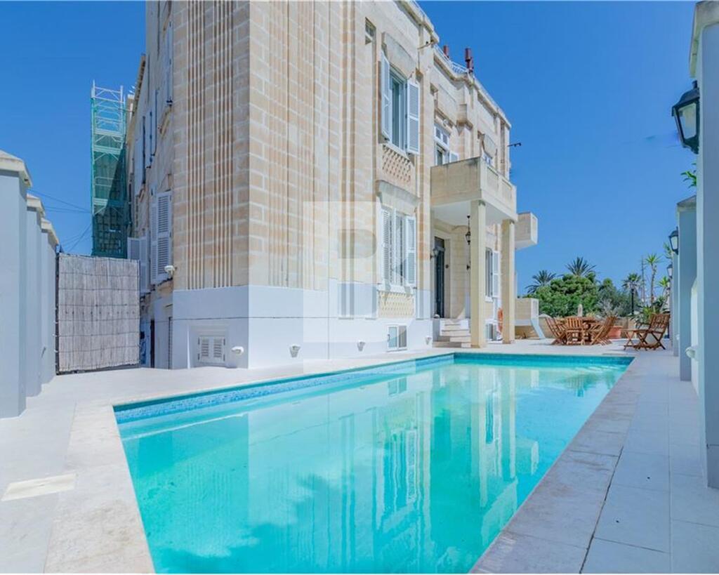 A beautiful unique seafront VILLA built in the early 20th century, located in Ta Xbiex. Ideal as a family home and finished to outstanding detail having an attractive layout, grand features retained throughout and stunning views. Accommodation comprises a welcoming hallway, sitting room, dining room, living room, study, fully fitted kitchen, guest toilet, four bedrooms, three bathrooms, master having an en-suite, laundry room, spacious terrace with amazing views of the yacht marina, gardens and beyond. Property also includes a lovely swimming pool with a spacious outside area - perfect for entertaining. Complimenting this property is a flatlet and a semi-basement one-car garage.