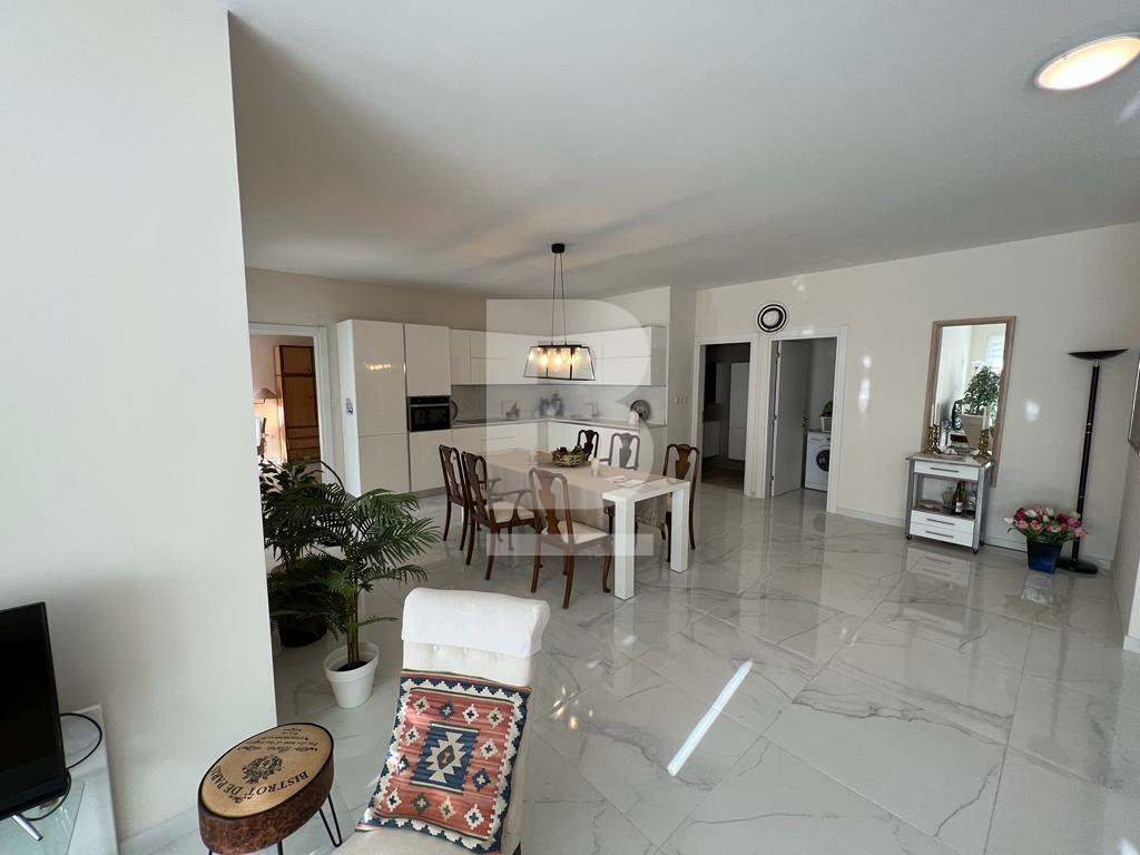 A beautifully designed first-floor apartment in this much sought after residential area of Swieqi.Comprising a very large open plan kitchen/ living/ dining room leading to a glass-fronted terrace . 2 double bedroooms, Master with en suite , 1 single bedroom all leading to the terrace. Main bathroom with bath. A laundry room. Ac throughout. Complimenting this property is an underlying lock-up garage .