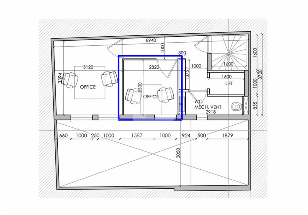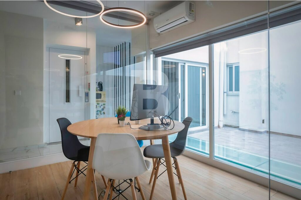 A 1 – 2 person 8 m² private office in a total of 171 m² +163 m² shared amenities in a new fully serviced office in a very central location in Qormi.