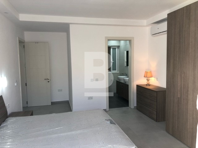 Ground floor 3 bedroom APARTMENT located in a quiet residential area, having two bedrooms both with ensuite, main bathroom, open plan kitchen/living/dining room, laundry room, hall, front/back yards. All external windows and doors are double-glazed and with mosquito nets. The property is serviced by a lift and is found on the ground floor. It includes new furniture, washing machine, oven, hob, fridge freezer, dish-washer, fully air-conditioned, flat screen T.V., hands free intercom and can be supplied with the following services at an extra cost being Go fiber optics internet, T.V. services. A garage lock up is optional at an extra cost.