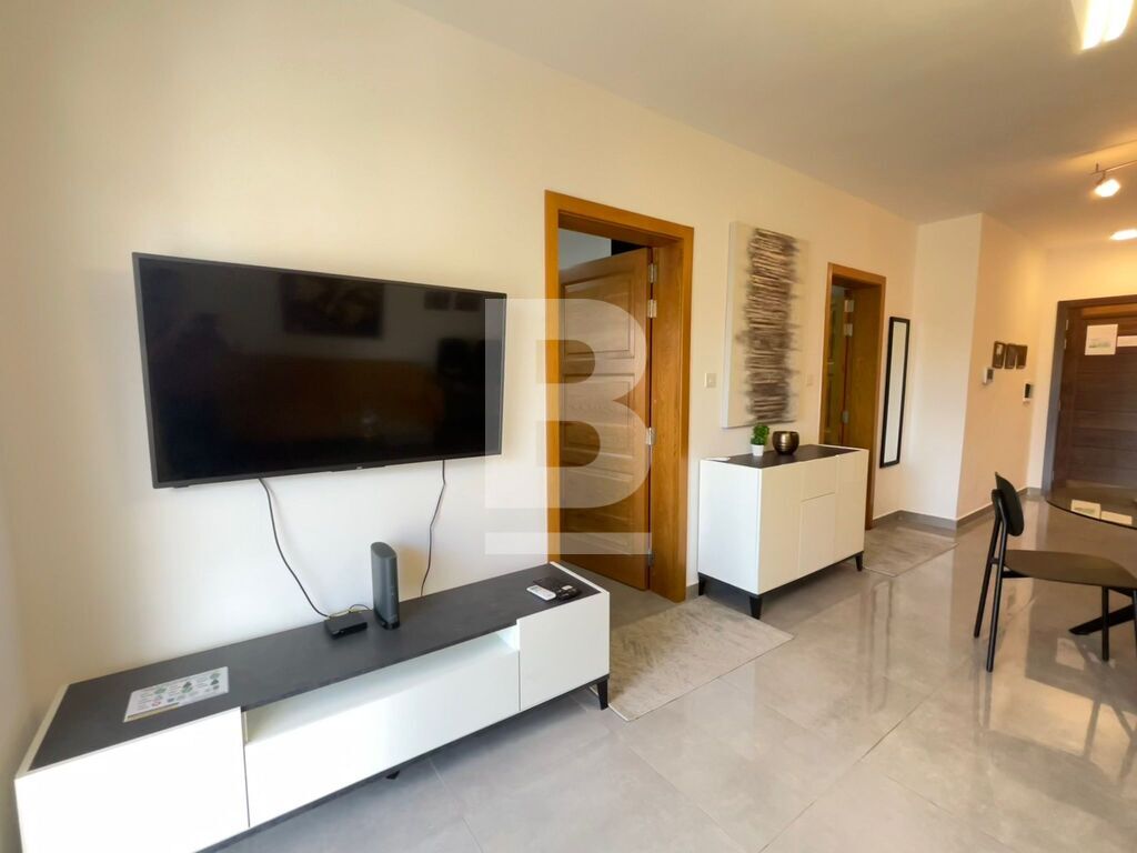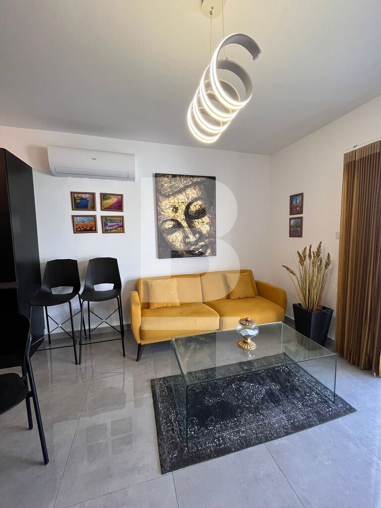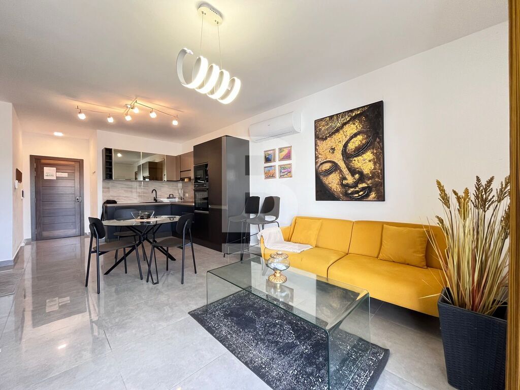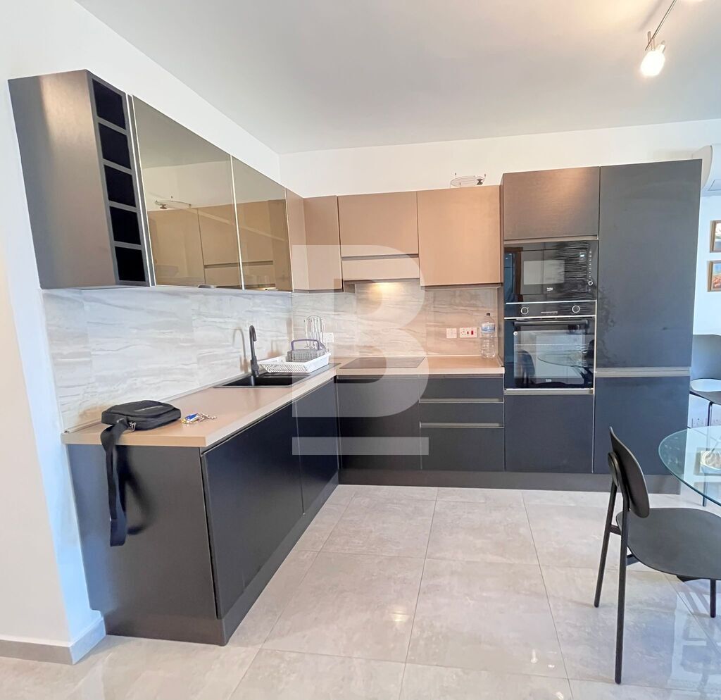 This smart flat is located in a brand new corner building, in the quiet residential area of Swieqi, still 5 minutes walk from shops, amenities and the popular St George Bay. This bright 60 sqm flat consists of an open plan kitchen/dining area, fully equipped at high end quality, spacious balcony with residential views, providing light and charme to the common areas, on the balcony there is a laundry cabinet, with washing machine and tumble dryer. This apartment has 1 bedroom and 1 main bathroom. Ideal home for a single or a couple. Small pets are allowed.