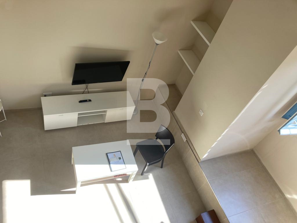STUDIO apartment located in a prestigious residential block conveniently interconected to shops, food-court restaurants and just a few steps from Spinola Bay. On the first floor this apartment consists of an open plan kitchen, dining and living area, TV sofa bed and laundry cabinet (washing and dryer) and upstairs one finds a spacious bedroom with en-suite bathroom. This apartment has AC, intercom and 24 hours concerge. Water and electricity bills are included in the rental price