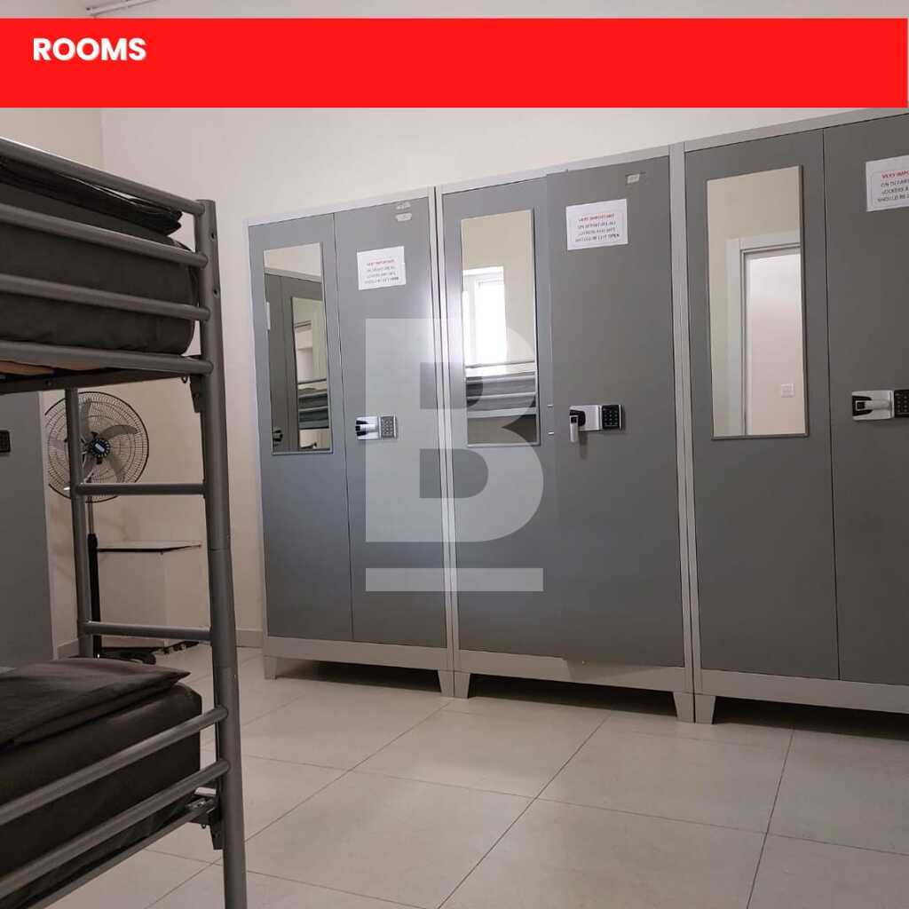 10 Bedrooms, each having 3 or 4 beds (bunk beds), having a total of 36 beds each having their lockable storage. 8 Showers, 6 WC, 3 Kitchens, 4 Washing Machines, Balconies all around from the Second floor, whereas a good sized yard and very large roof terrace with BBQ area are also available as outdoor space. Occupants have the facility to use 3 kitchens with reverse osmosis, 4 washing machines, and free wifi. Kindly contact us directly for more detailed information.