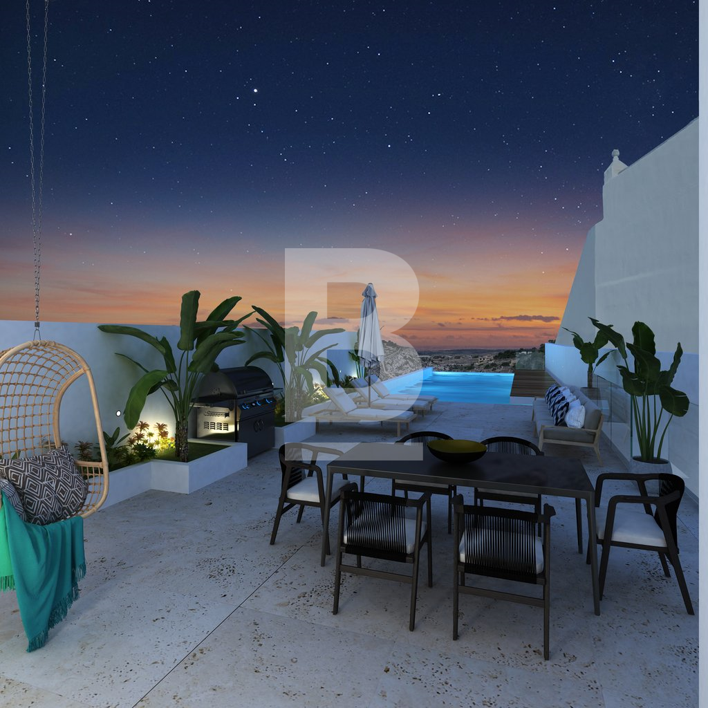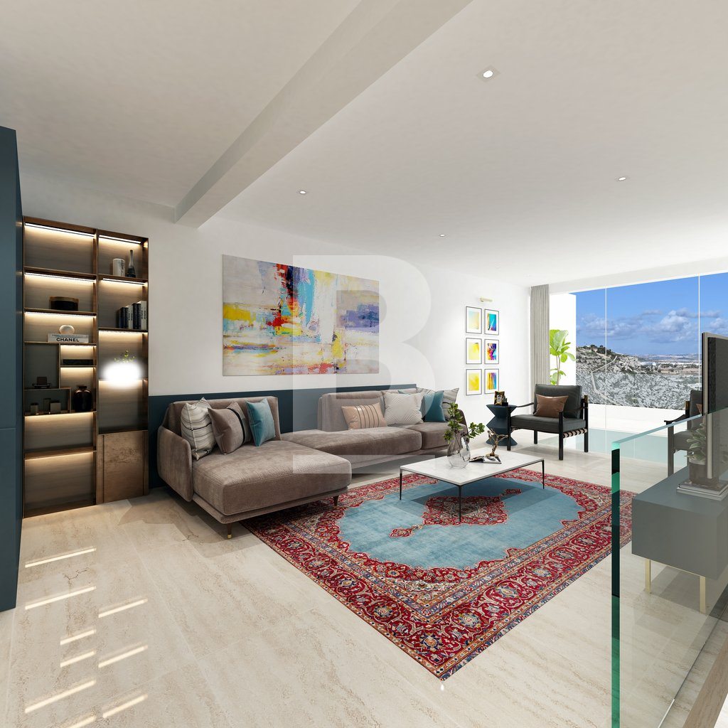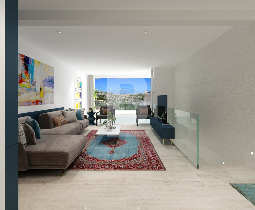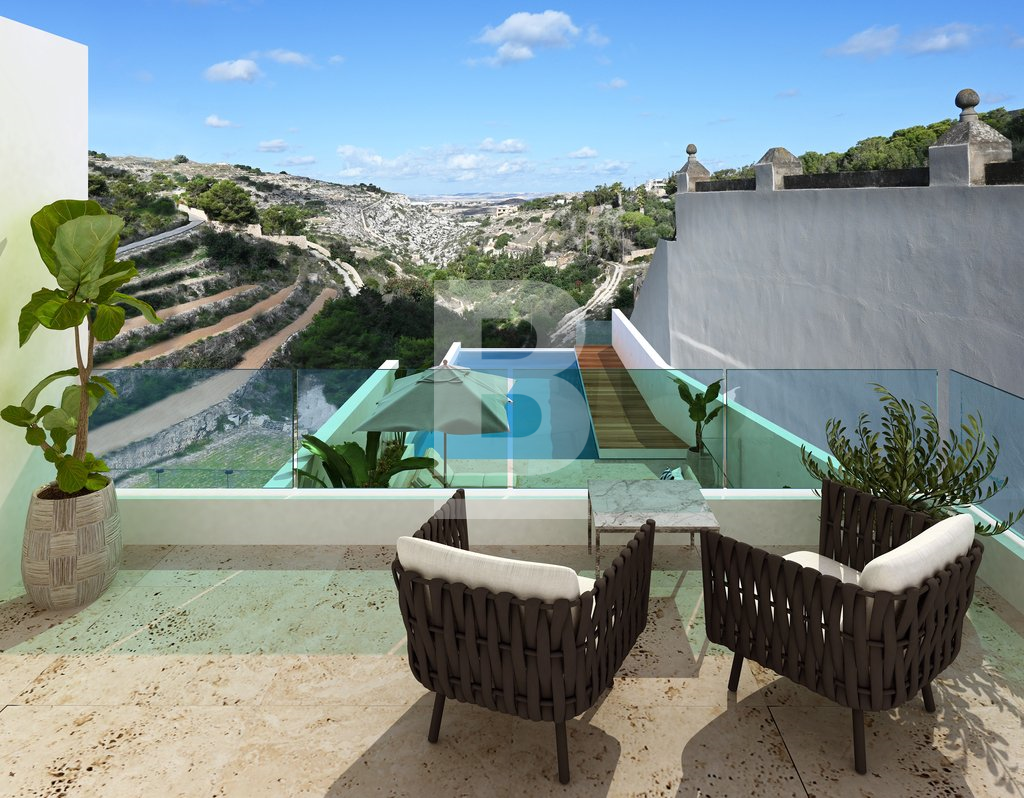 An exceptionally well positioned 5-bedroomed, newly built villa, located at the exclusive neighbourhood of Madliena, set on high grounds overlooking Madliena Valley, with unobstructed and guaranteed country and sea views as far as Gozo, just a short distance from St. Julian’s and Portomaso Marina. Built on a 550 sqm plot and accessible from 2 streets, the property consists of a larger than usual 120 square metre living area, with a double height lounge area. On the first floor one finds 2 double bedrooms, the master bedroom enjoys the unobstructed Views, has it's en-suite bathroom and private walk in wardrobe. The second bedroom leads onto a good sized terrace, also view with views and comes with it's en-suite bathroom. A spacious hallway also with views, can be used as a study area. A the lower level, one finds an additonal 2 bedrooms, one bathroom with side terraces. A separate lounge area at the pool level pool leads onto the 100 sqm pool deck and a large 10 metre infinity pool, with unobstructed country and sea views up to the Gozo. An independent 50 sqm private home office / 5th bedroom / GYM, complements this property, with extensive soft landscaping as well as discreet service areas have also been incorporated in the property’s open plan design. A comfortable 3 car garage with an additional car carport makes this property truly unique for the discerning client. The property is being sold in advanced shell form, with all external rendering and water-proofing complete, and internally in shell form to be completed to the buyer’s specific requirements. The developer is available to complete the property to the buyer’s specifications. Viewing is highly recommended for the property to be appreciated.