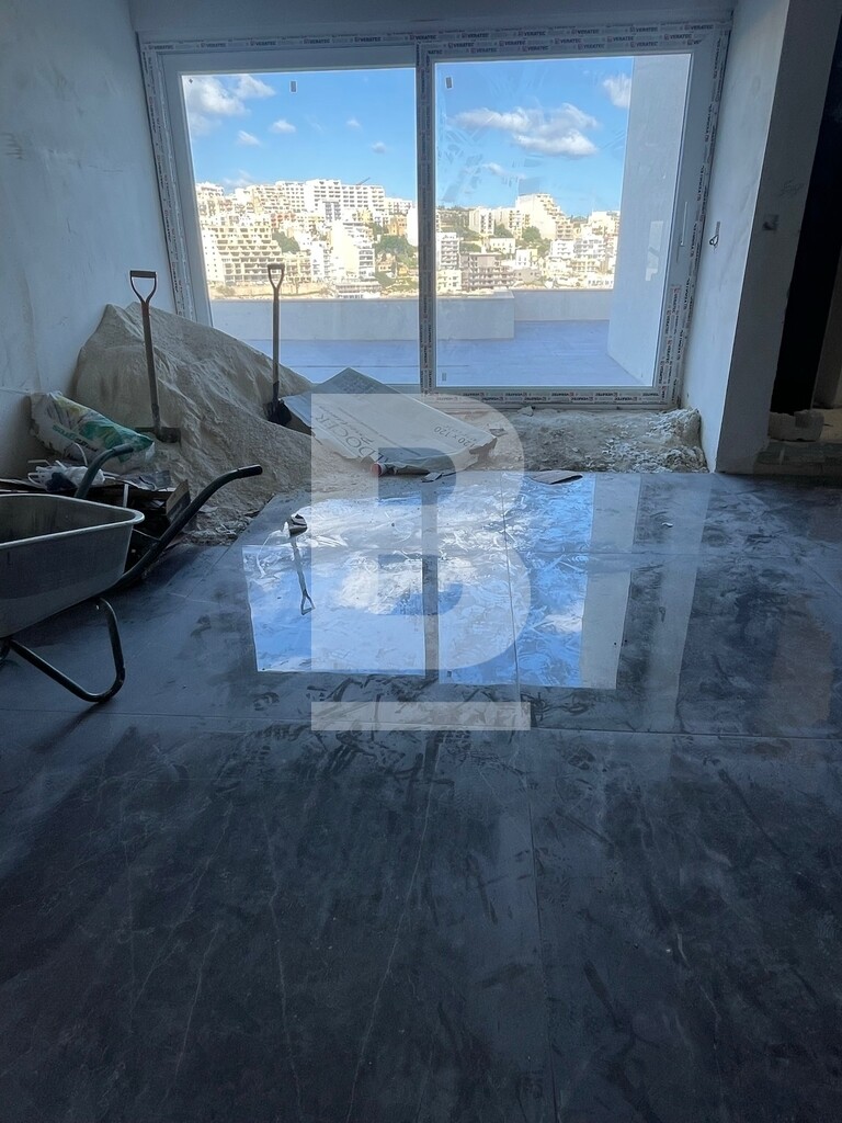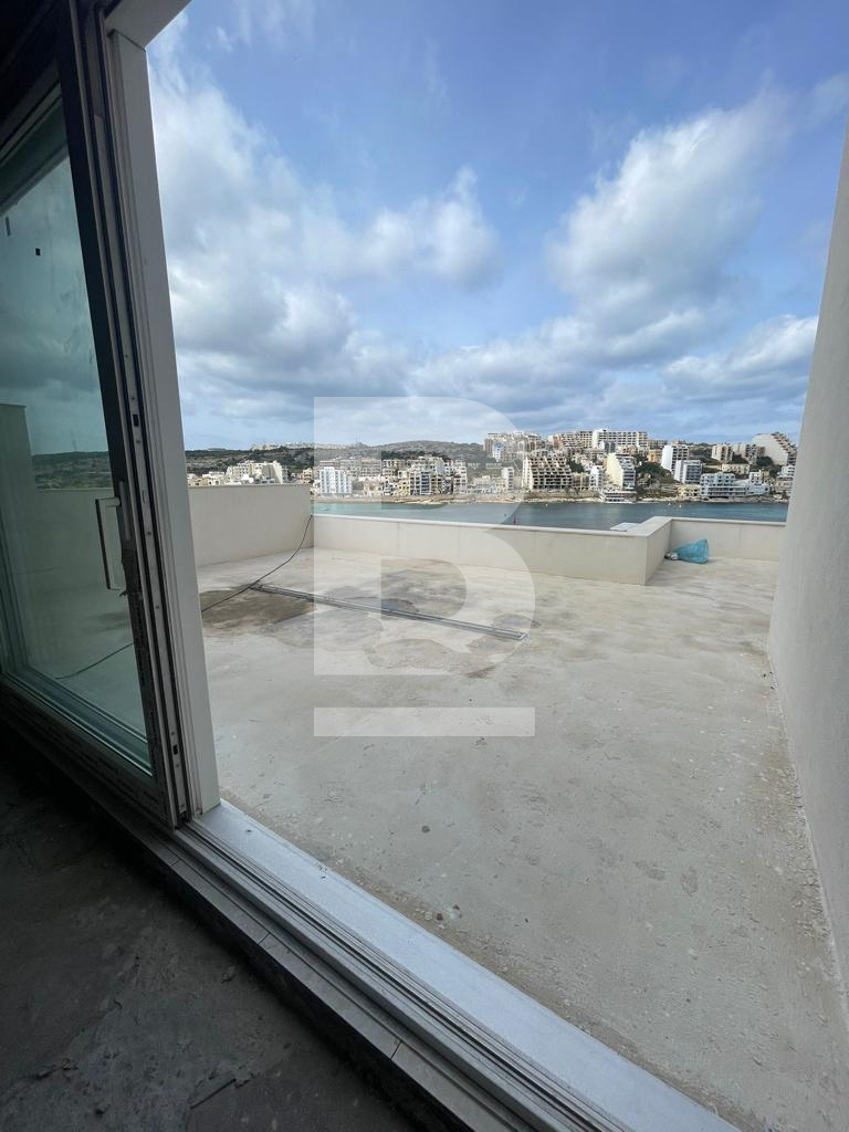 St Pauls Bay - Located in this sought after area of St Paul s Bay is this lovely Penthouse enjoying breathtaking sea views. Property consists of an open plan kitchen/dining area, three double bedrooms two with an en-suite, main bathroom, a boxroom and a huge terrace with spetacular seaviews. Propety is being sold finished excluding bathrooms and doors, and includes the airspace. Freehold.
