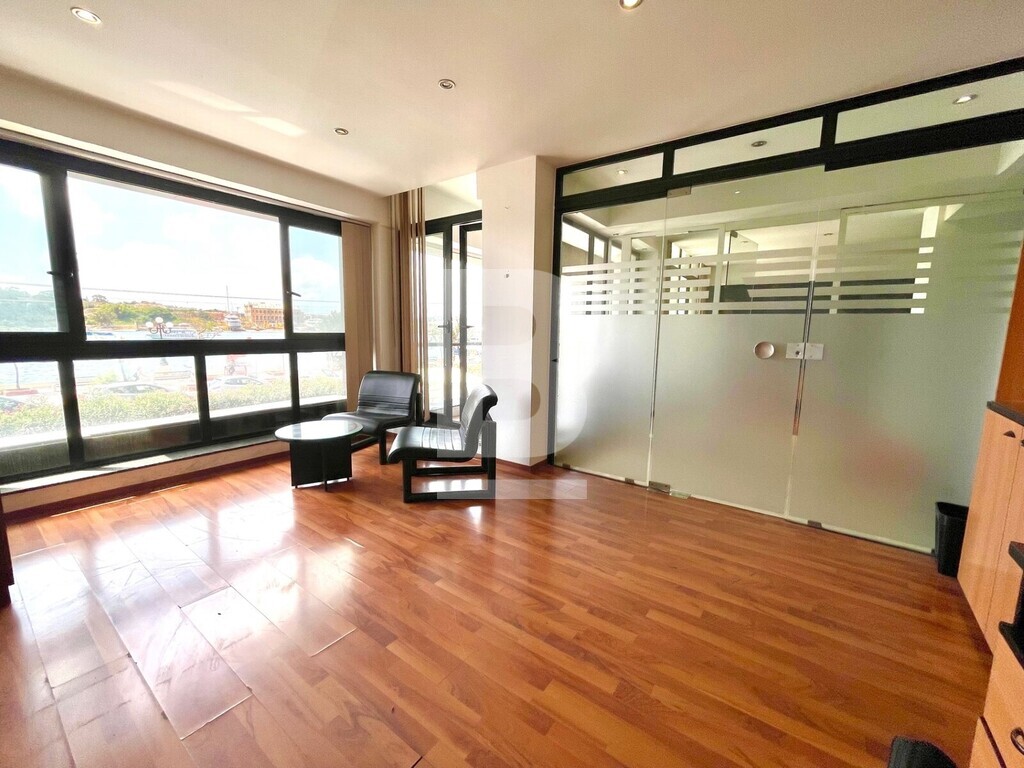 Located on the Sliema Seafront with a vast array of cafeterias and restaurants, with spectacular views of Manoel Island and Valletta one finds this first-floor office with an inter-connecting lock-up garage. With a very wide glass facade and a small terrace which can be accessed from two independent offices or a walkway.