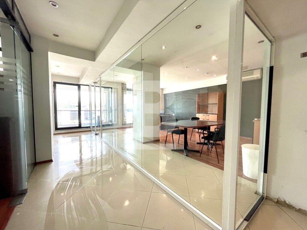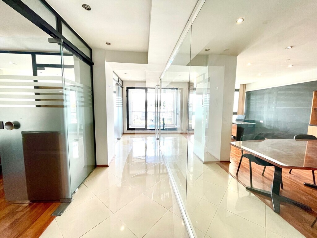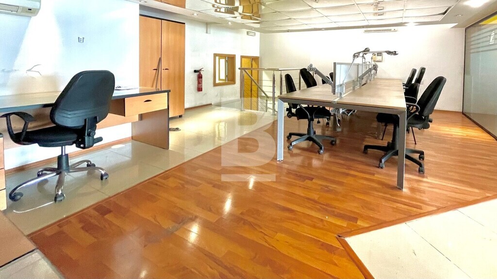 On entering the property from a private stair case you find a wide lobby area with space for work stations, to the left a kitchenette, two guest toilets and a store room. On the left of the lobby are three office rooms, one of which can be split.