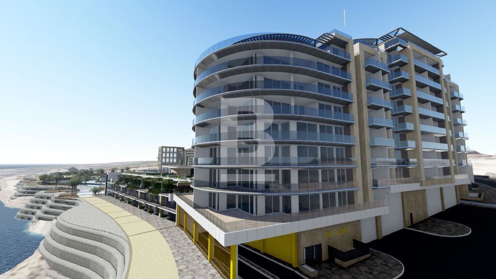This unit is situated right on the corner seafront, hence enjoying a stunning sunrise from a large 104 sqm terrace. Accommodation comprises an entrance hall leading to a very large open plan sitting / dining / kitchen & breakfast room, 2 large double bedrooms, main with a walk-in wardrobe, and both bedrooms enjoying en-suite facilities and a guest toilet. The unit comes with an optional car space.