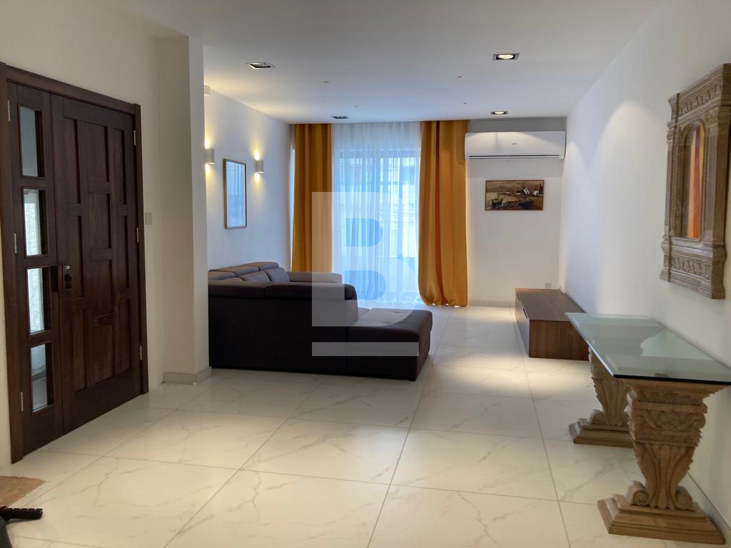 A bright and spacious first-floor MAISONETTE in the village of Attard comprising a large open plan fully equipped kitchen, living and dining area leading onto a front balcony, a main bedroom with en-suite shower room, two other bedrooms, and a main bathroom. The maisonette benefits from full ownership of roof.