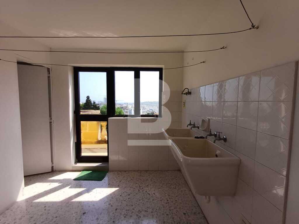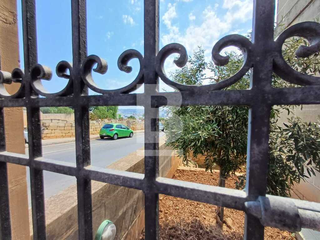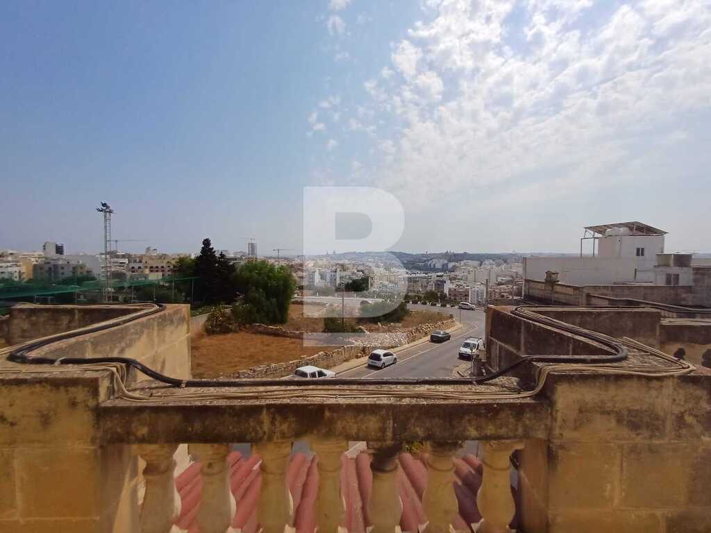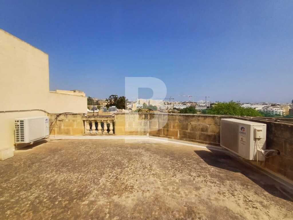 Corner TERRACED HOUSE located right infront of St Martin's College in Swatar. One the first floor one finds a welcoming entrance, kitchen/living room leading onto a pretty back yard, sitting room, dining room, study and a large bathroom. The second floor consists of three double bedrooms, large bathroom and a flight of stairs that leads to the good sized wash room and roof with distant views of Valletta. The propery is equipped with washing machine and air-conditioning.
