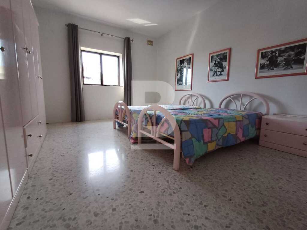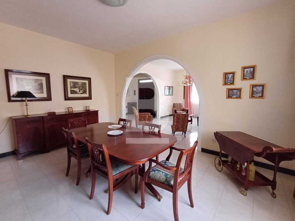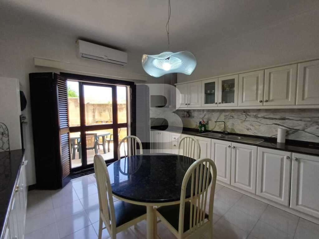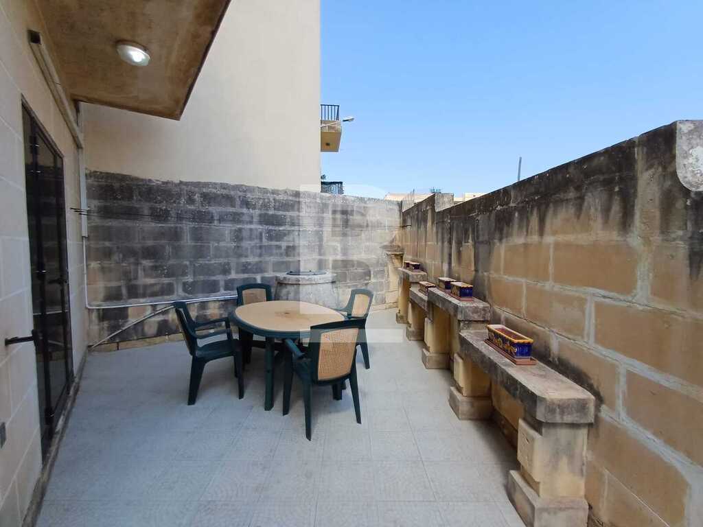 Corner TERRACED HOUSE located right infront of St Martin's College in Swatar. One the first floor one finds a welcoming entrance, kitchen/living room leading onto a pretty back yard, sitting room, dining room, study and a large bathroom. The second floor consists of three double bedrooms, large bathroom and a flight of stairs that leads to the good sized wash room and roof with distant views of Valletta. The propery is equipped with washing machine and air-conditioning.