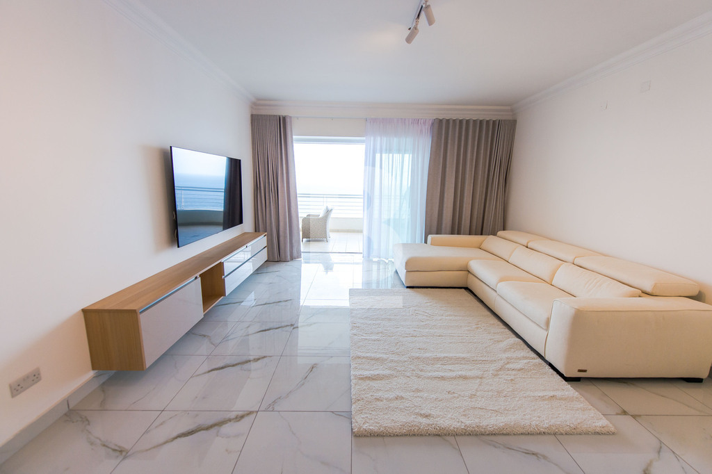 A spacious 16th-floor fully furnished apartment forming part of a luxury gated development having special designated area status, covering an internal area of circa 155 sqm enjoying exceptional sea views over Qui-si-sana. Attractive layouts comprise of 2 double bedrooms ( main with en-suite bathroom), a main bathroom study area, and a spacious open plan kitchen/living/dining room leading to a spacious terrace with outdoor furniture and laundry area. The property is fully equipped with air-conditioning units, furnished to a very high standard with all amenities and access to a large outdoor swimming pool and deck area private for residents of Fort Cambridge. A fitness center is also available at an additional cost.
