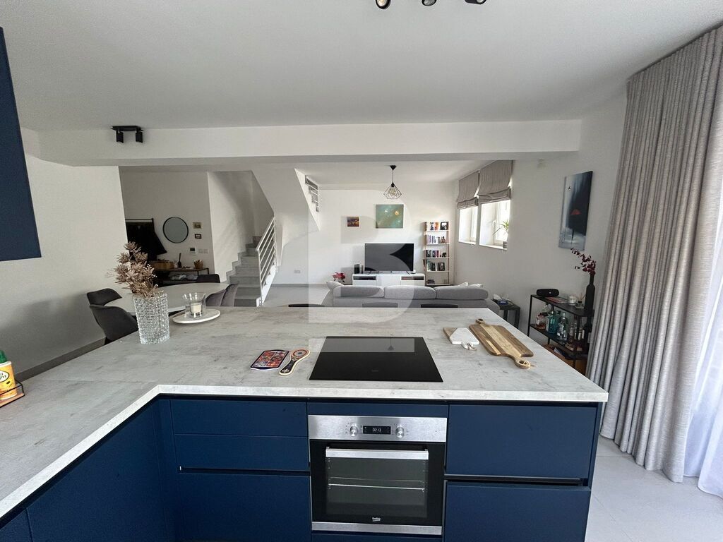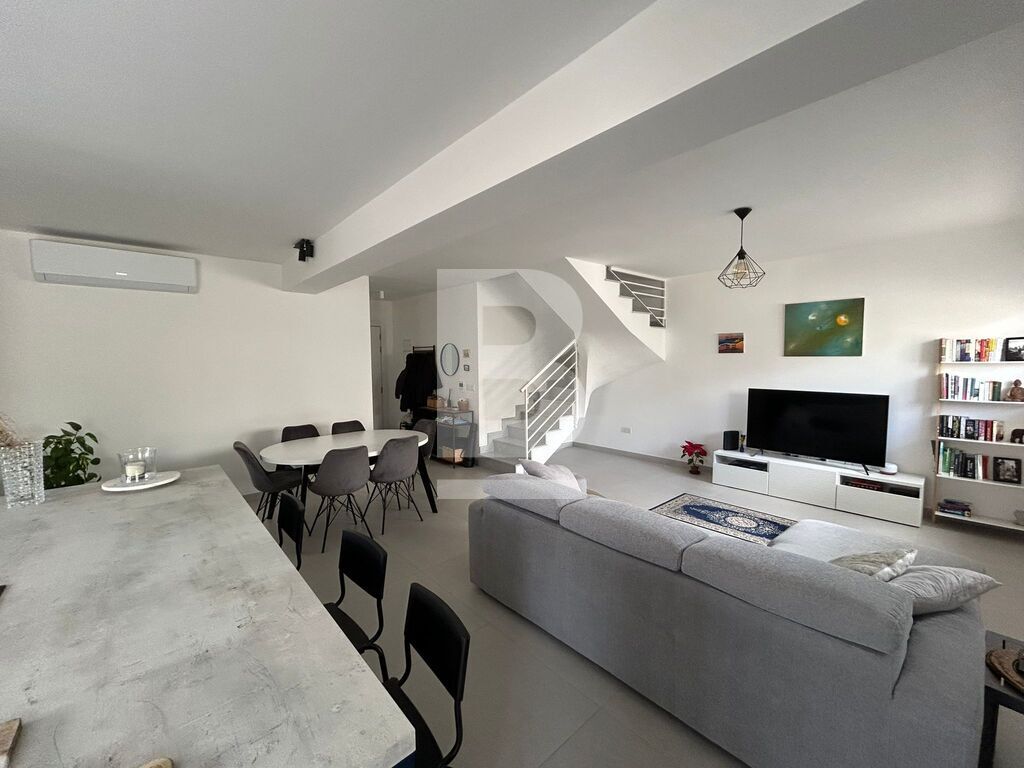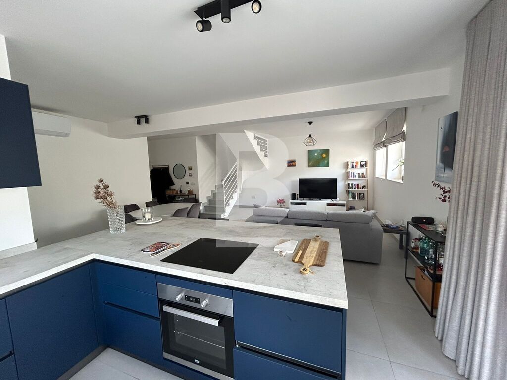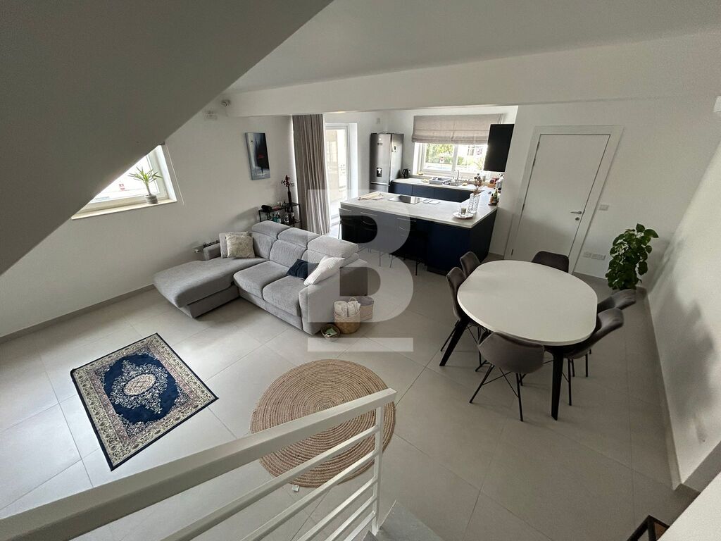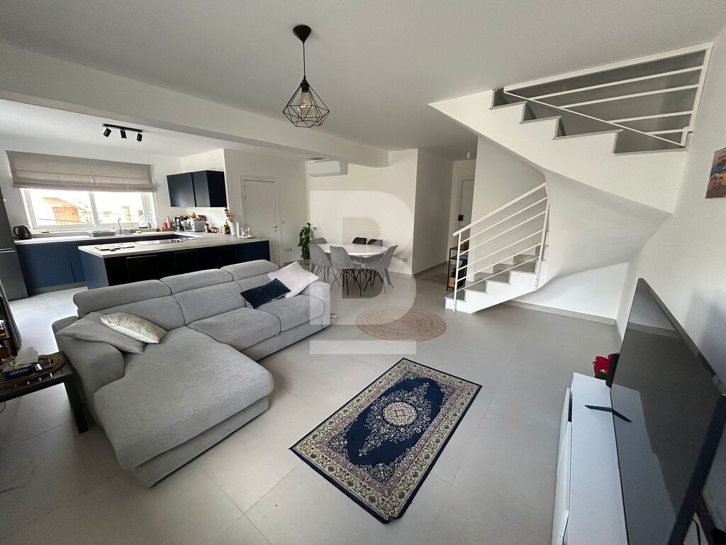 Fully furnished, bright 1st floor corner duplex apartment in a squarish layout, in a quiet residential area not too far from all amenities, supermarket, gymnasium and San Gwann main road. On the lower level one is welcomed by a hallway leading onto a spacious open plan kitchen/ living /dining having a large surrounding balcony and a bathroom. A staircase leads onto the upper level where one finds 2 bedrooms, also with a surrounding large balcony, a shower room and a laundry room with washer/dryer. Property is fully equipped and fully air-conditioned.