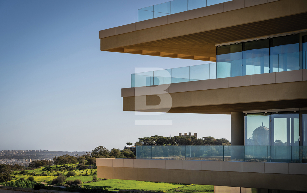 A new high-end development offering an exclusive collection of 87 residential units spread across two distinct blocks. These stunning residences offer a varied mix of 1 to 4 bedrooms, duplexes with private pools and penthouses with an excellent choice of sizes, layouts, and orientations. All units will be delivered highly finished, including underfloor heating in bathrooms, concealed air conditioning and intelligent lighting. With a range of premium doors, tiles, and bathroom fixtures, residents can make their homes their own, ensuring that every aspect of their living space reflects their distinctive preferences. High-quality glazed aperture doors and windows enhance the sense of open living spaces within the residences whilst design measures have been taken to mitigate sound transmission, inclusive of insulated walls, floors and ceilings between residences. Large pjazzas and vast areas of landscaping are also available for residents to enjoy with underground garages and spaces equipped with electric charging points. The development which enjoys an SDA certification, is located in a peaceful corner of Rabat right upon a ridge with breathtaking countryside views within a short distance from Mdina, represents a unique residential proposition, giving owners privileged access to upscale amenities and hotel-level services. The development also offers a spacious communal infinity pool with a pool bar, professional concierge and security services, a well-equipped fitness centre as well as a state-of-the-art spa. This is a 149 sqm (119 + 30) apartment situated on the fifth floor enjoying partial views and comprises an entrance hall onto an open plan kitchen/living/dining leading out onto a terrace, 3 bedrooms with two enjoying ensuite facilities, a main bathroom and a utility room.